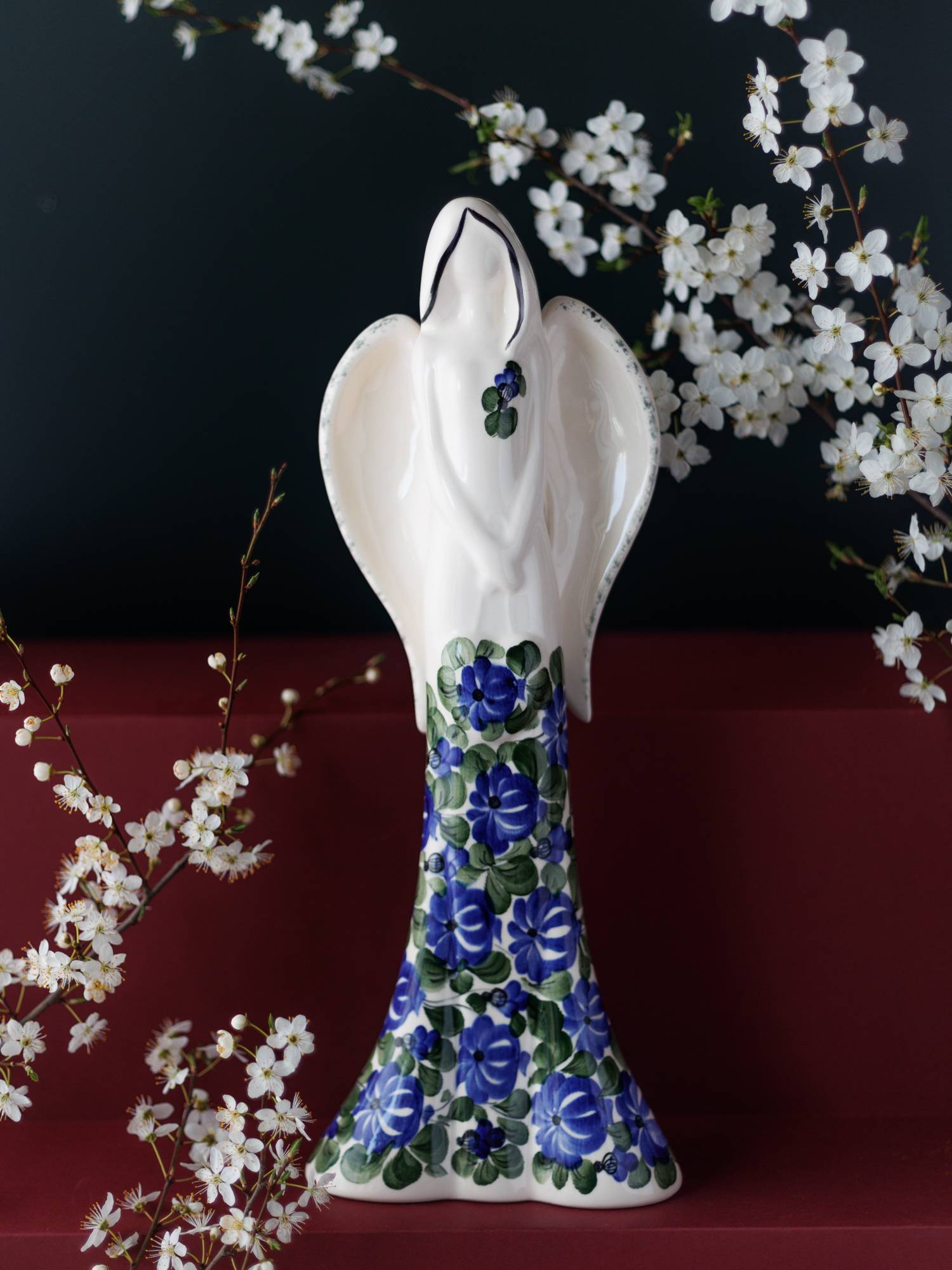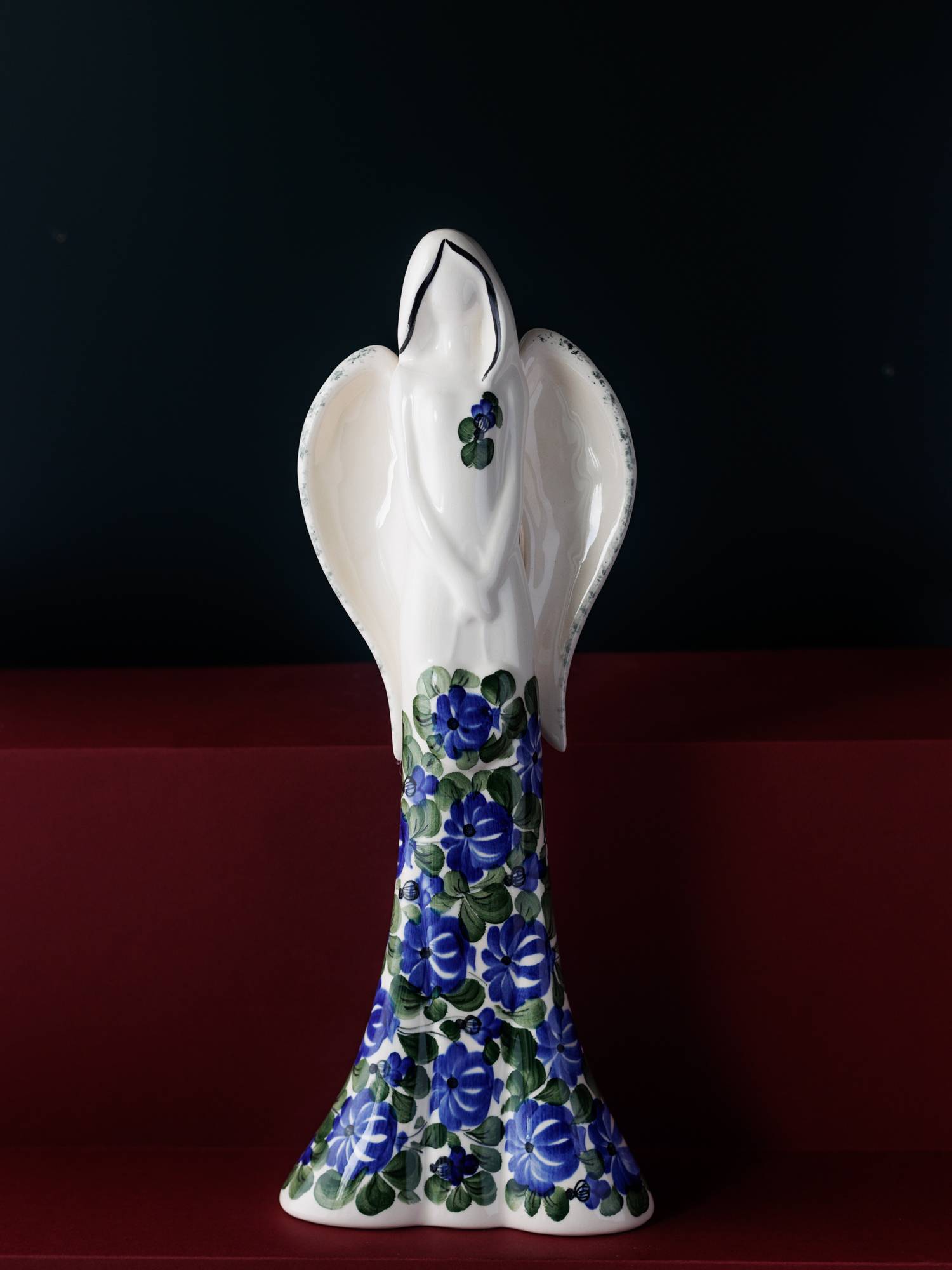 Anioł duży z kobaltowo-zielonym wzorem - fajans Włocławek