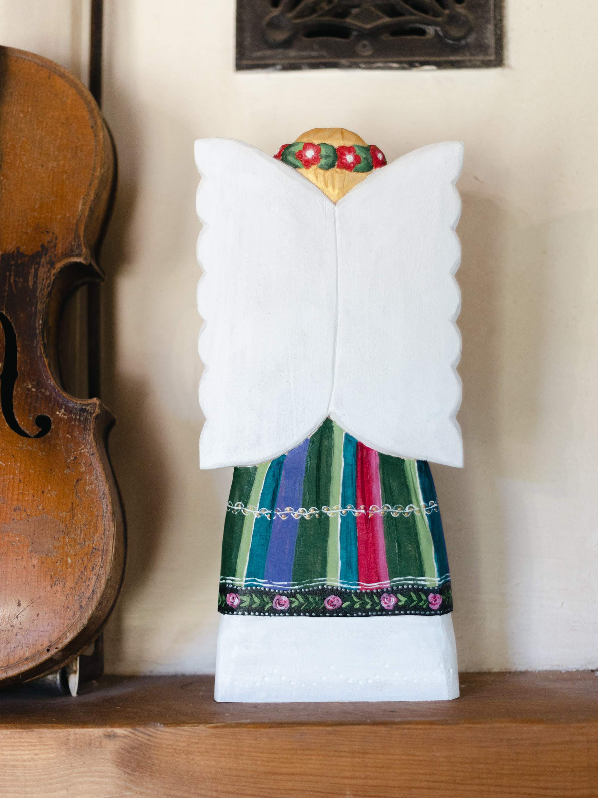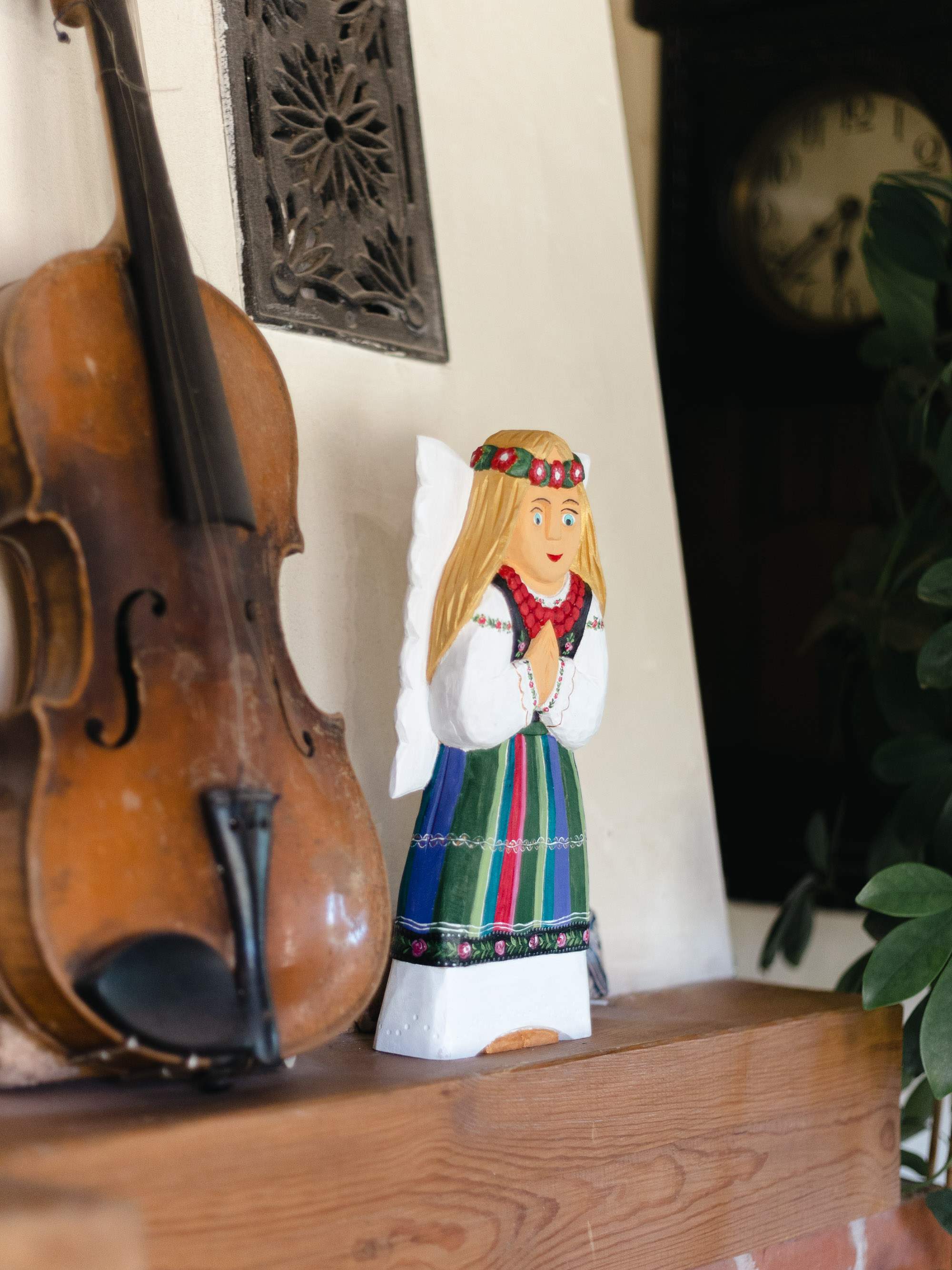 Anioł w stroju łowickim rzeźbiony - 26cm