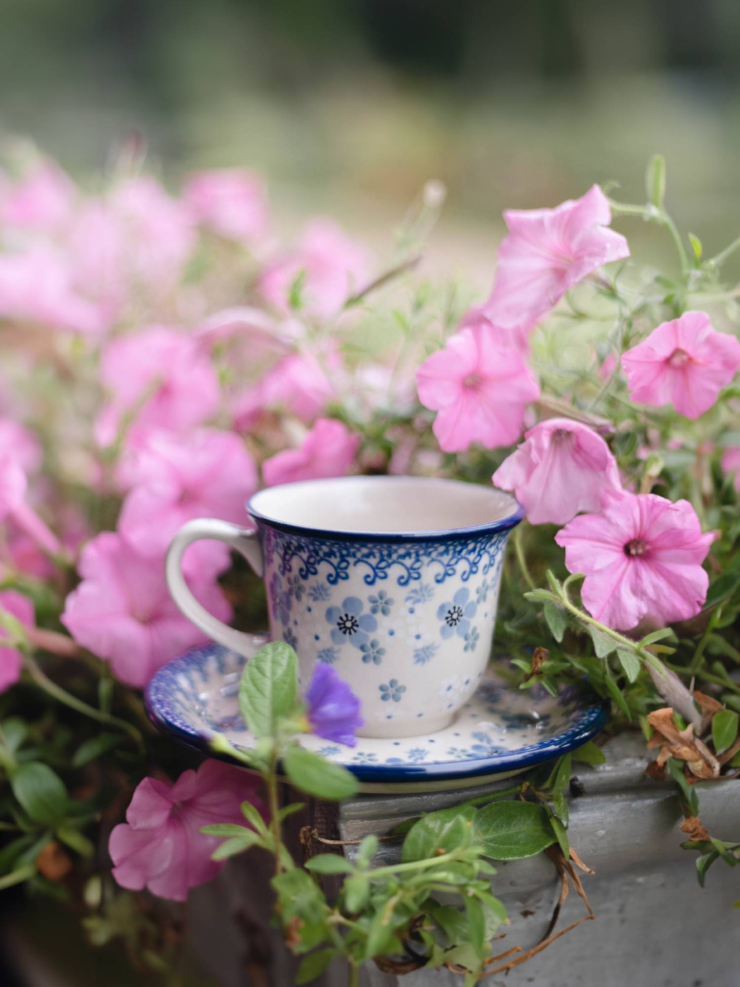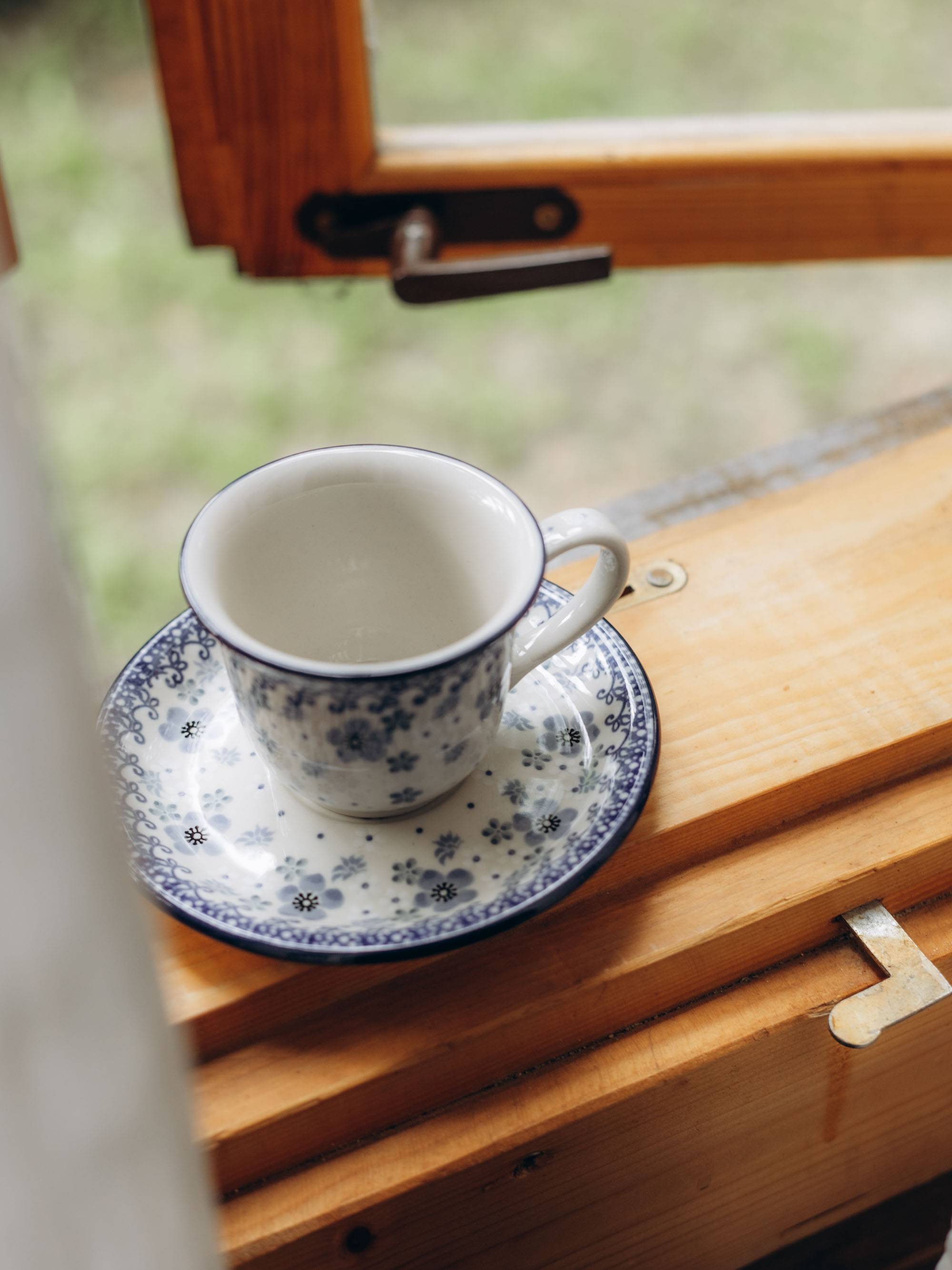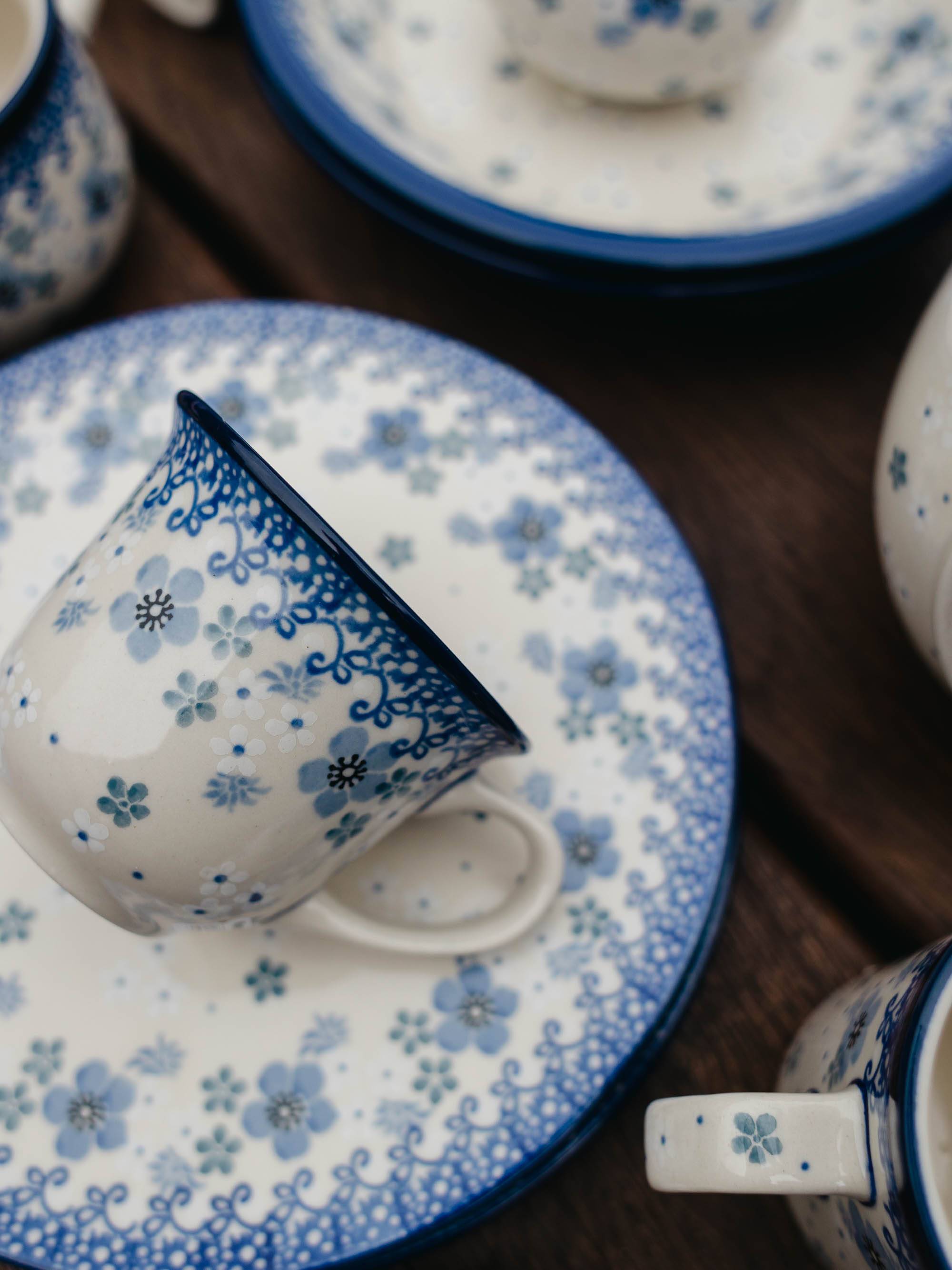 Filiżanka do kawy z podstawkiem Koronka - ceramika Bolesławiec