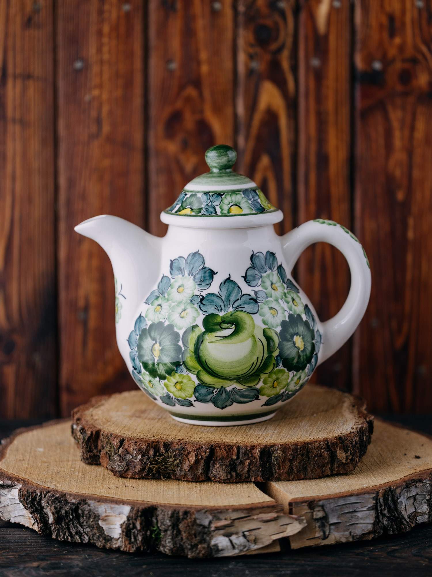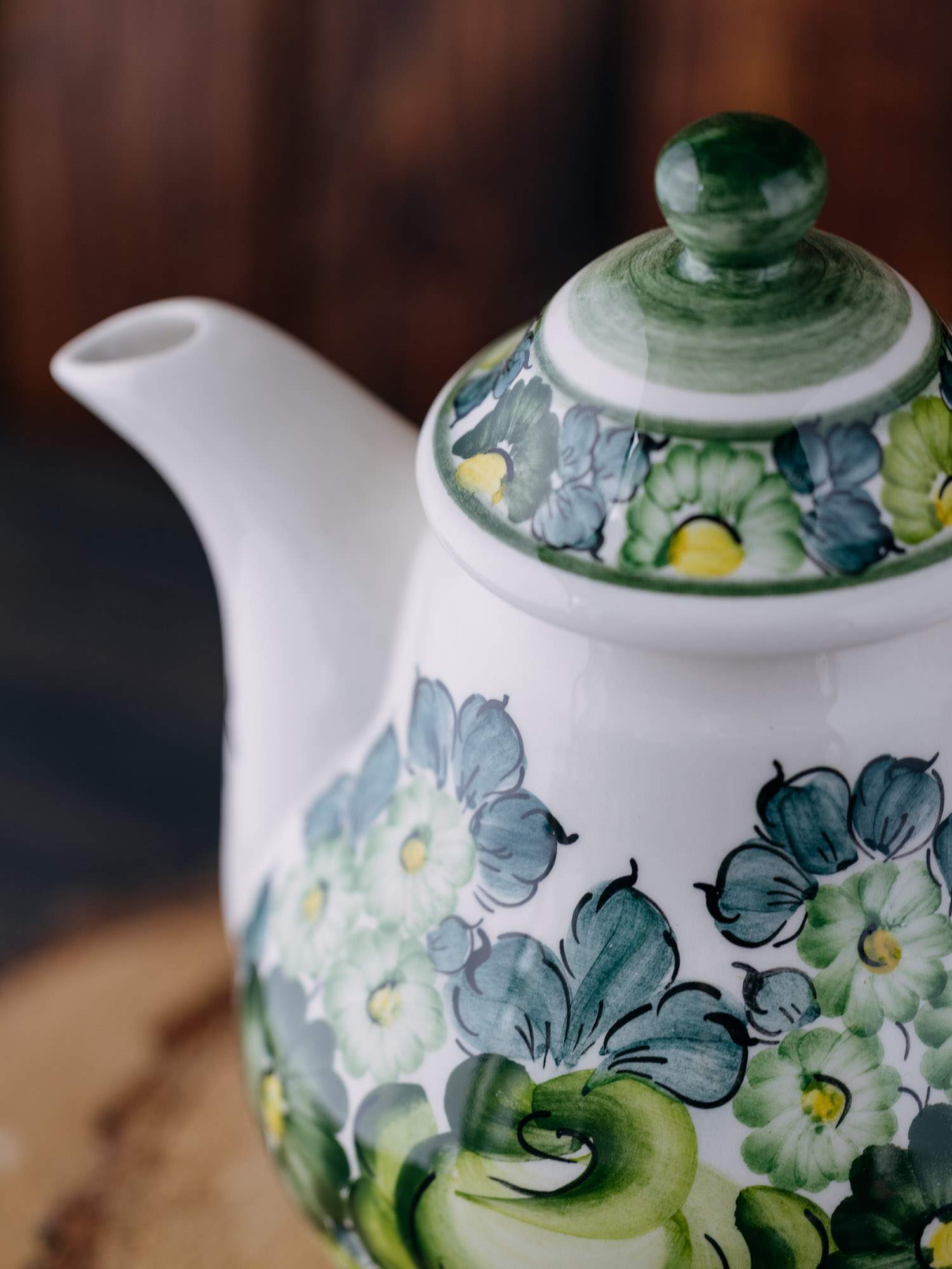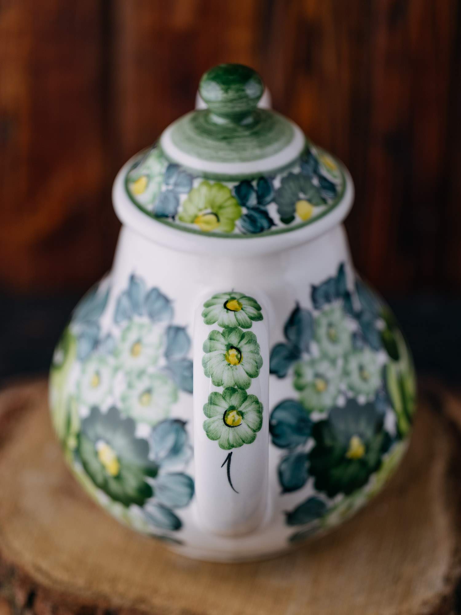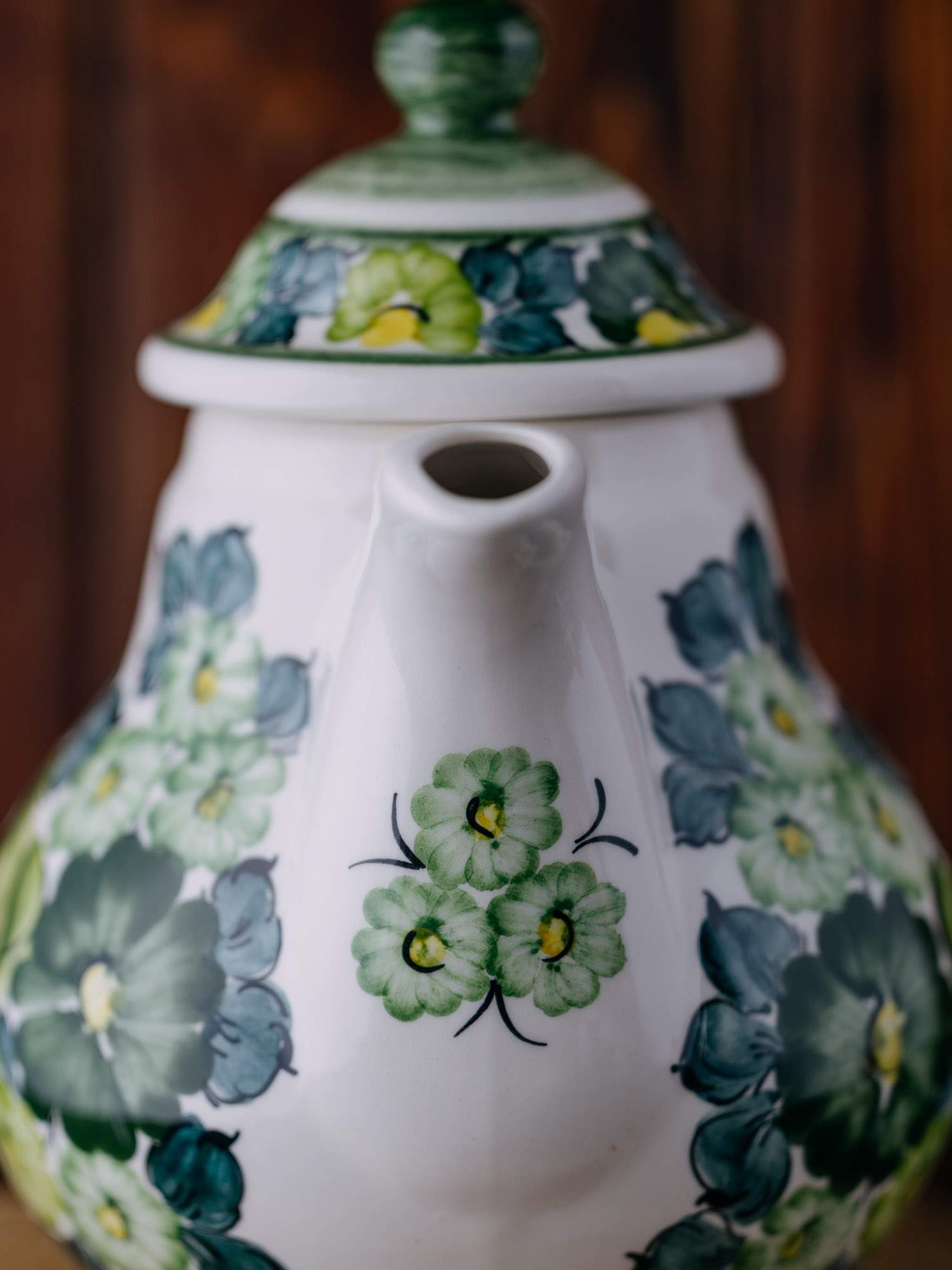 Imbryk wykonany z wysokiej jakości. Ozdobiony tradycyjnym, zielonym wzorem z Fajansu Włocławek. Ręcznie malowany z niezwykłą starannością, stanowi zarówno praktyczne naczynie do serwowania herbaty, jak i stylową ozdobę stołu. Solidna ceramika gwarantuje trwałość i długotrwałe użytkowanie. Dodatkowo, dobrze zaprojektowany uchwyt oraz precyzyjny dzióbek zapewniają wygodne i bezpieczne nalewanie.