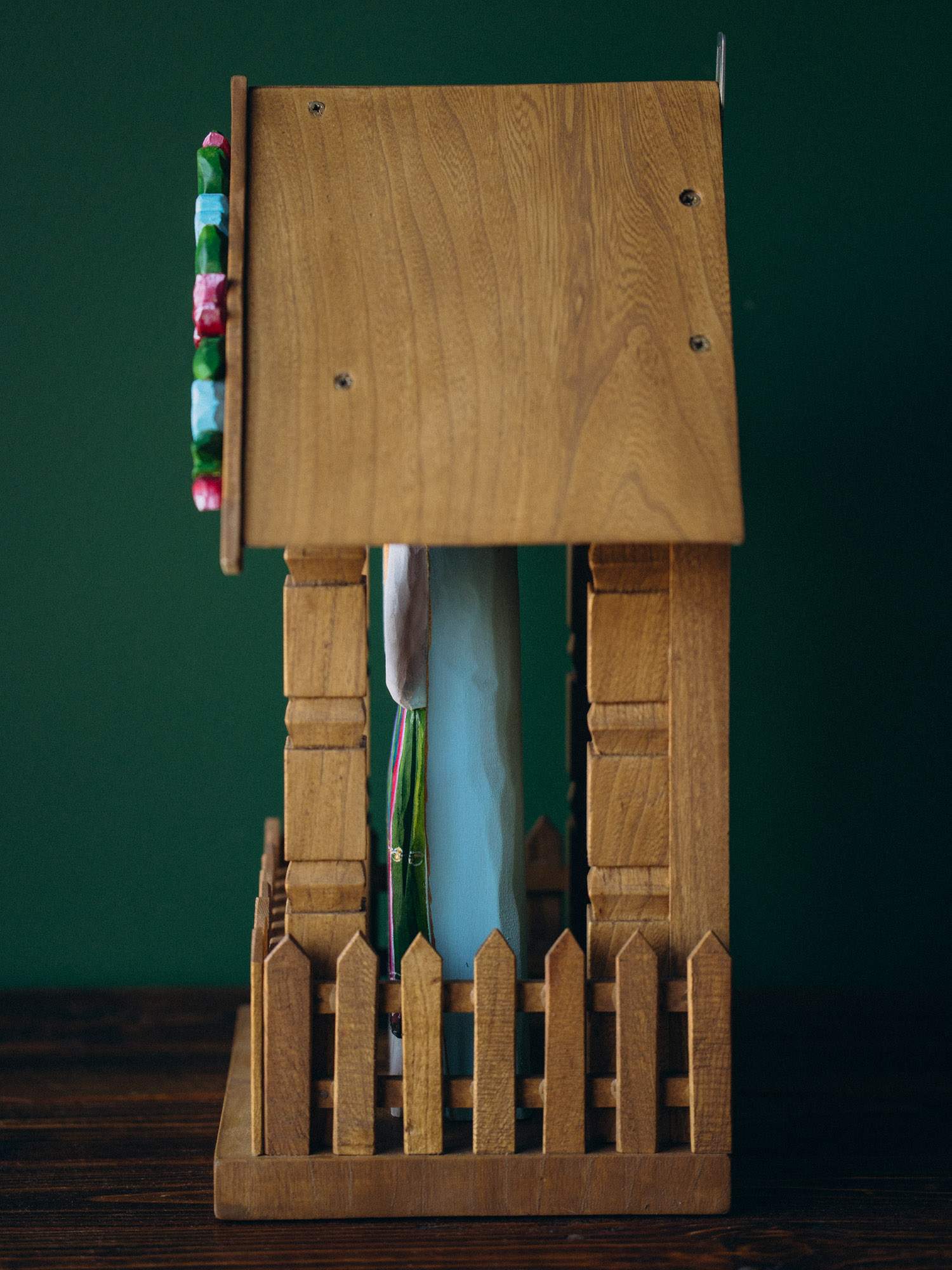 Kapliczka rzeźbiona - jasny domek z Maryją łowicką