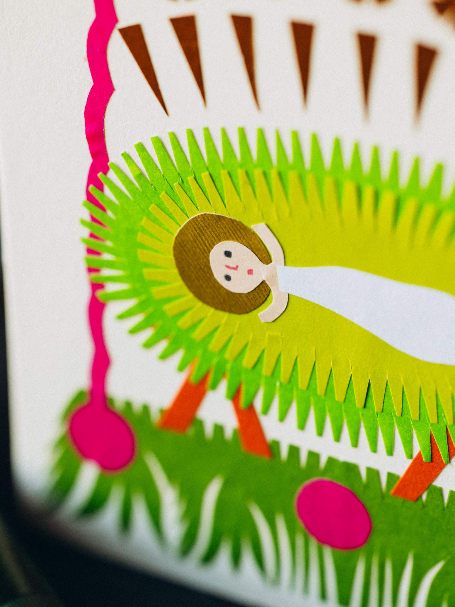 Wykonana ręcznie symboliczna wycinanka, przedstawiająca Dzieciątko Jezusa leżące w żłobie.