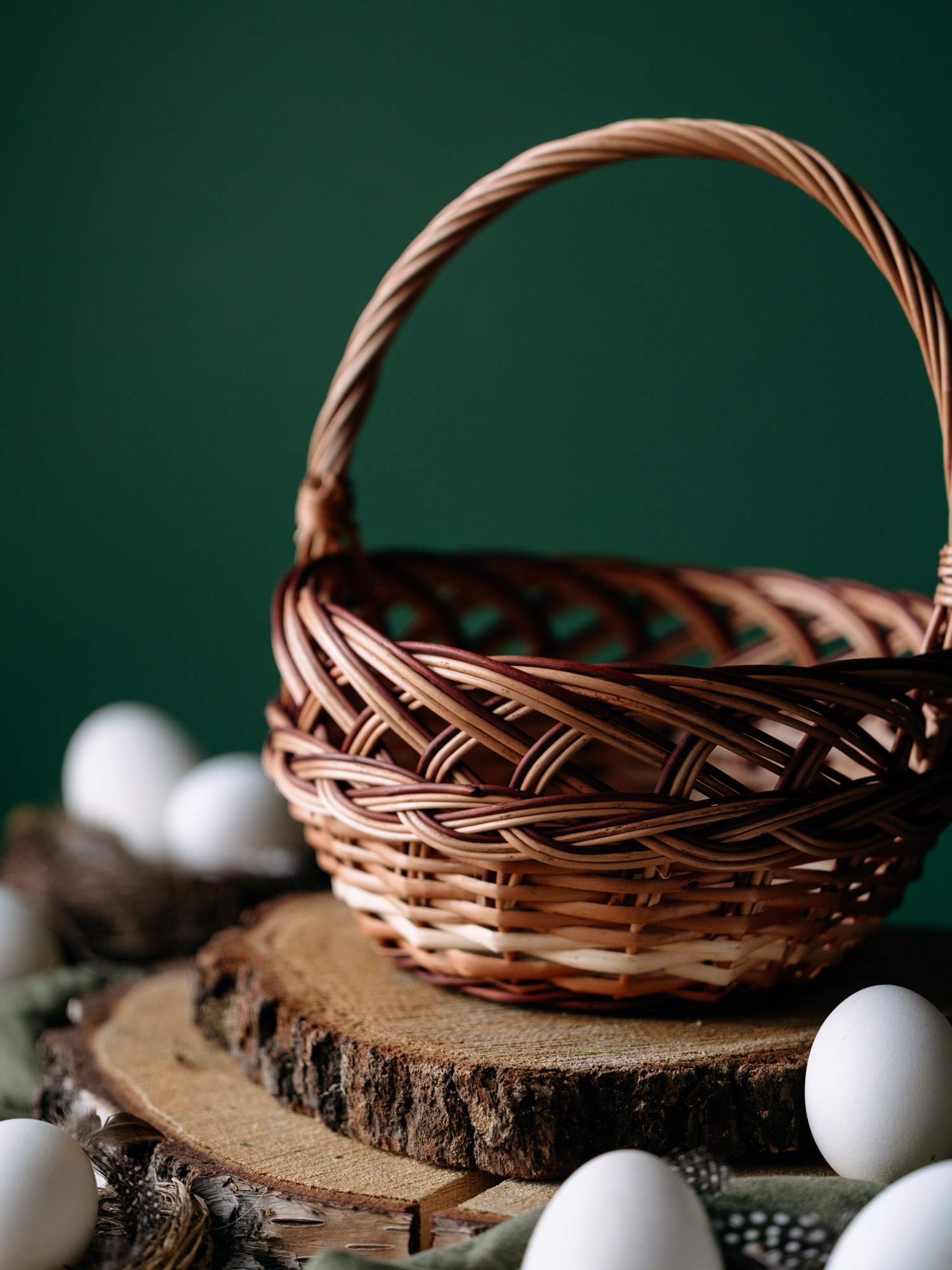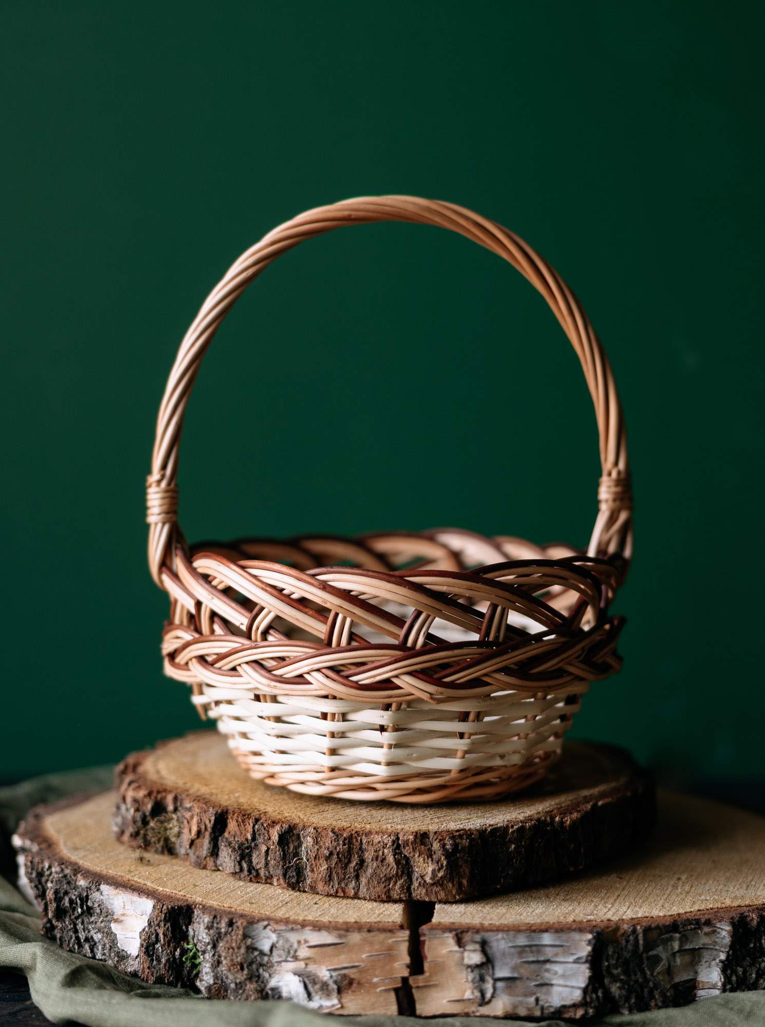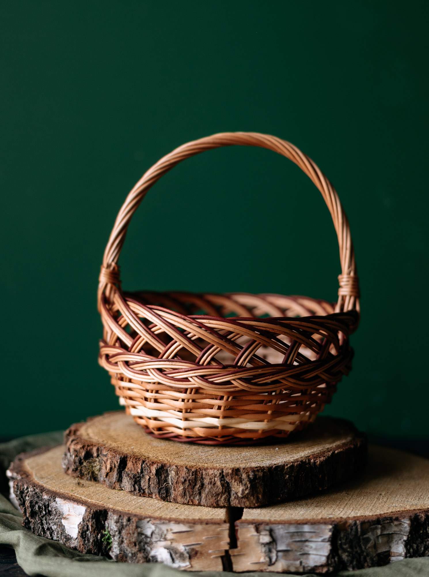 Ręcznie wypleciony z wikliny koszyczek wielkanocny.