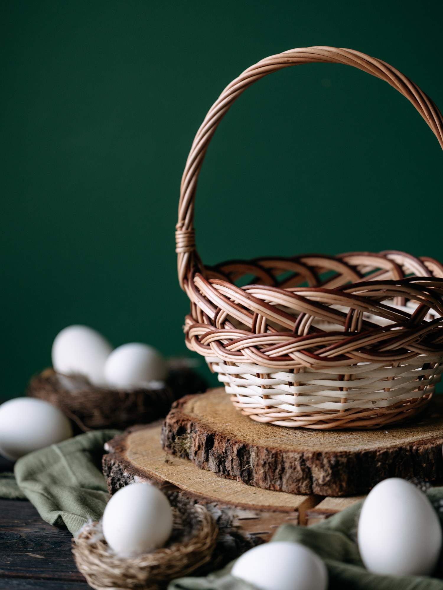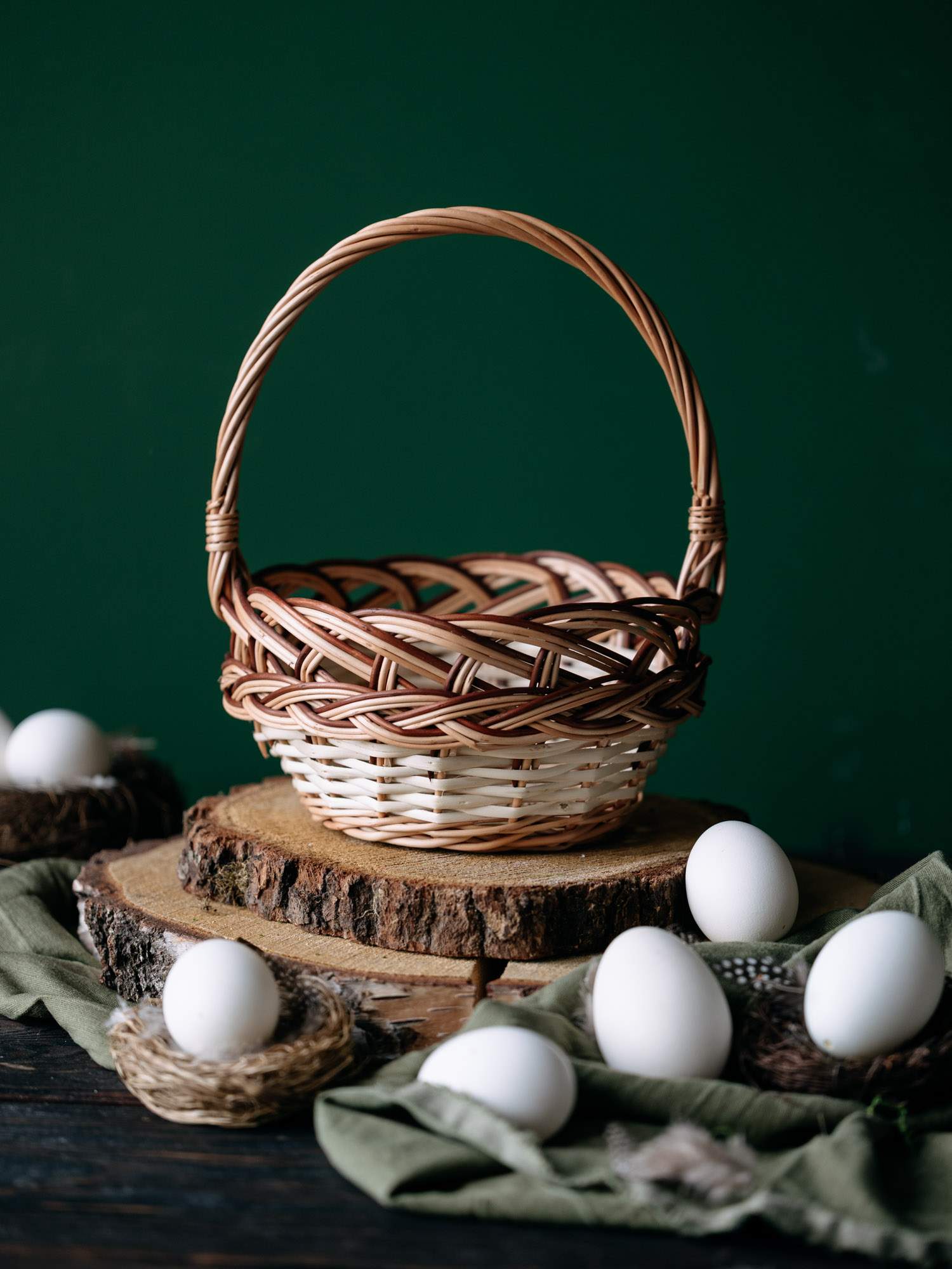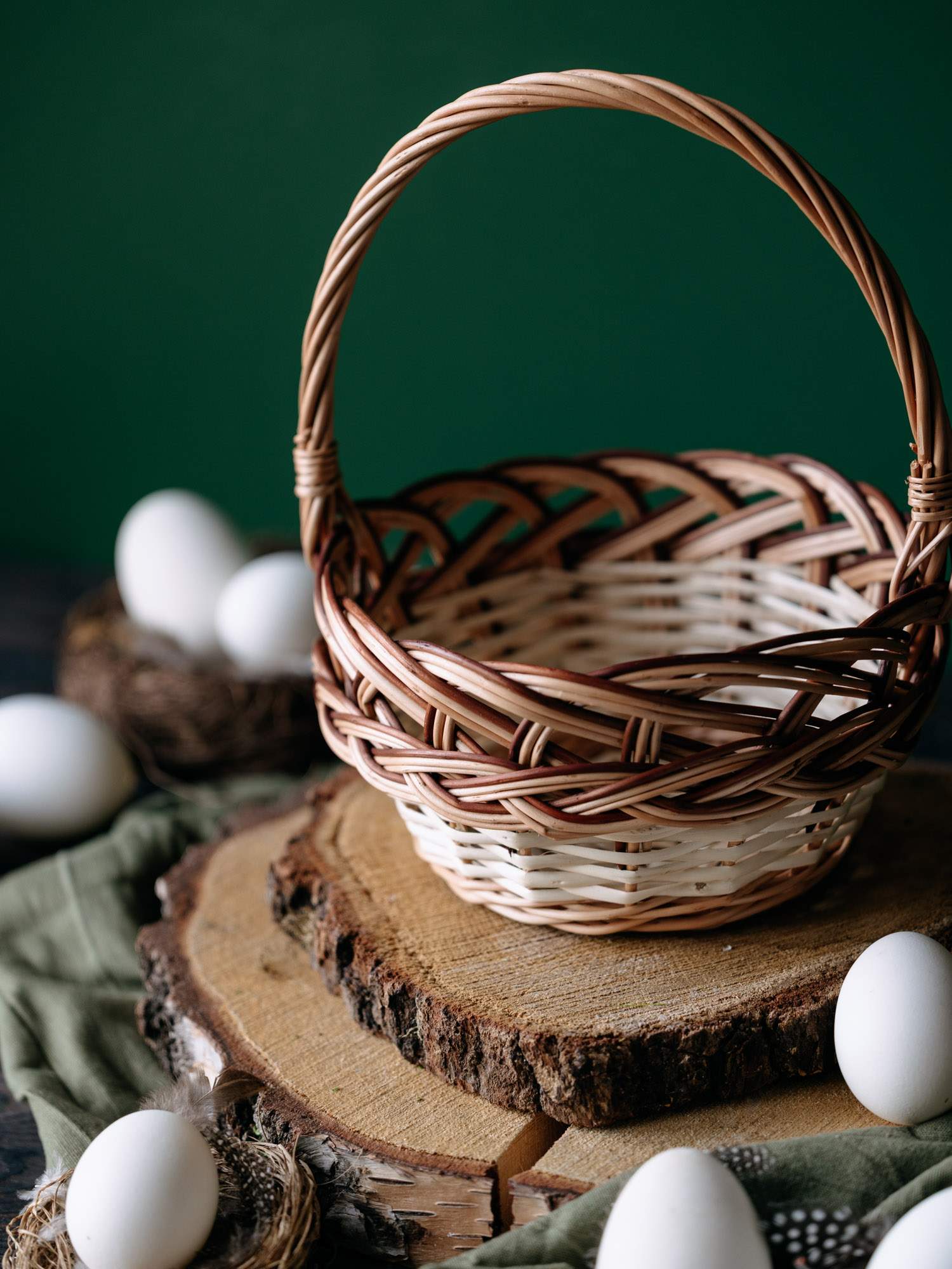 Ręcznie wypleciony z wikliny koszyczek wielkanocny.