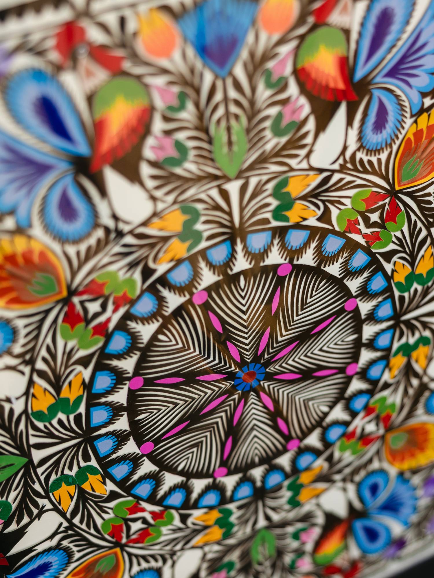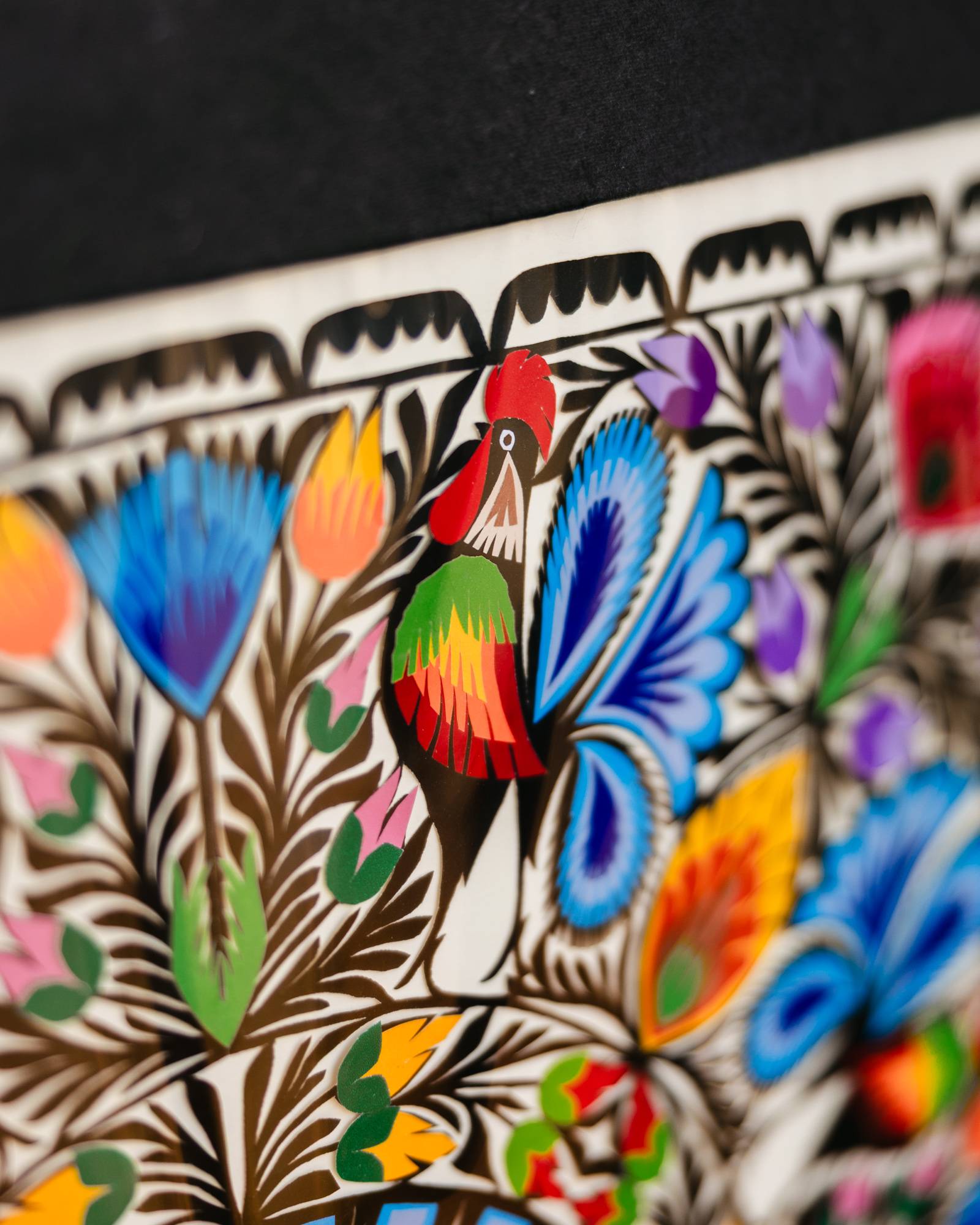 Wykonana ręcznie wycinanka z różnokolorowego papieru. Uwagę przyciągają kształty, precyzja, dokładność oraz ilość wykonanych ręcznie najmniejszych elementów. W dawniejszych latach służyły jako element zdobniczy, obecnie idealnie sprawdzą się jako ozdoba do wnętrz.