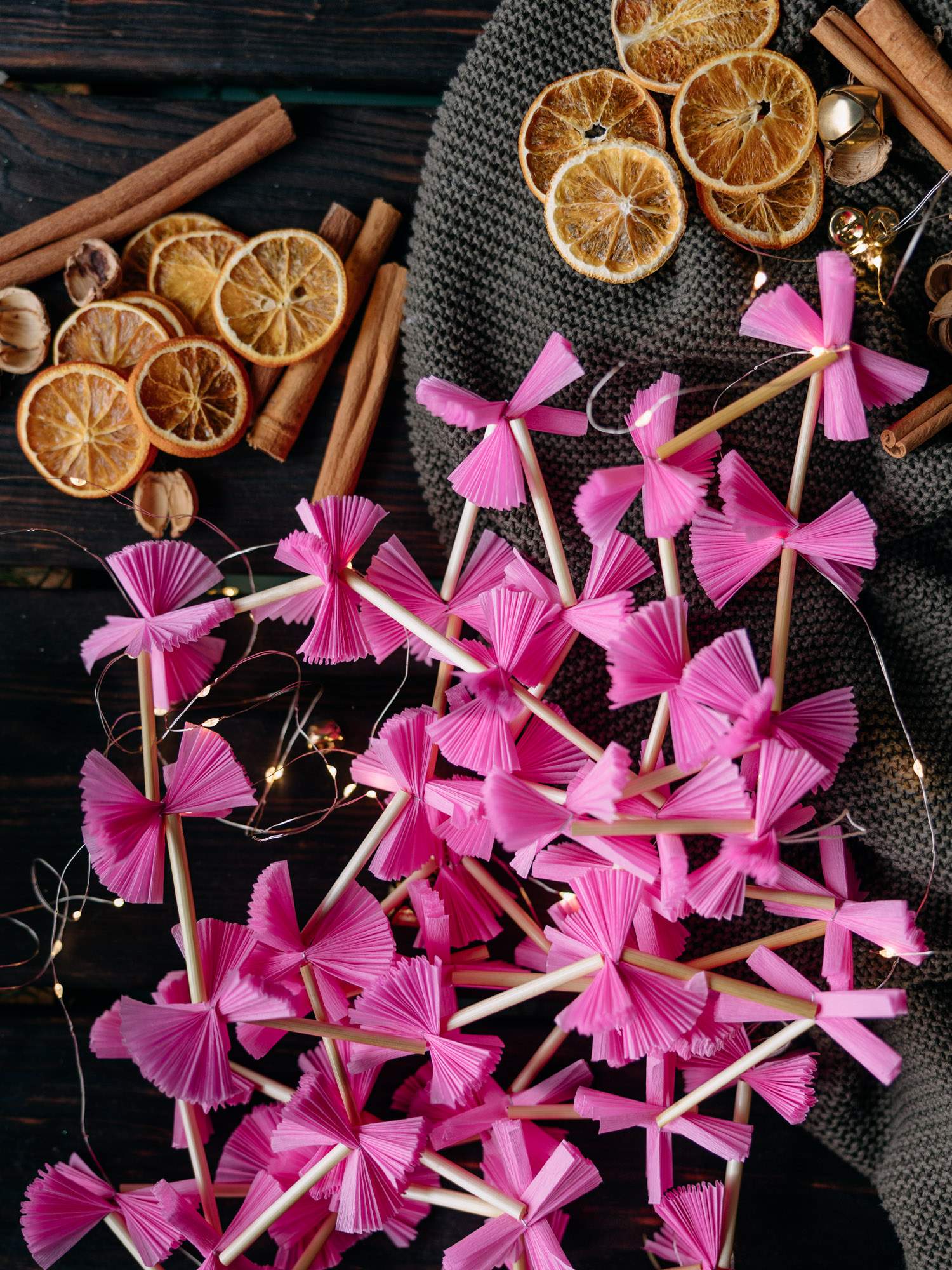 Ręcznie wykonany, różowy łańcuch na bożonarodzeniową choinkę.