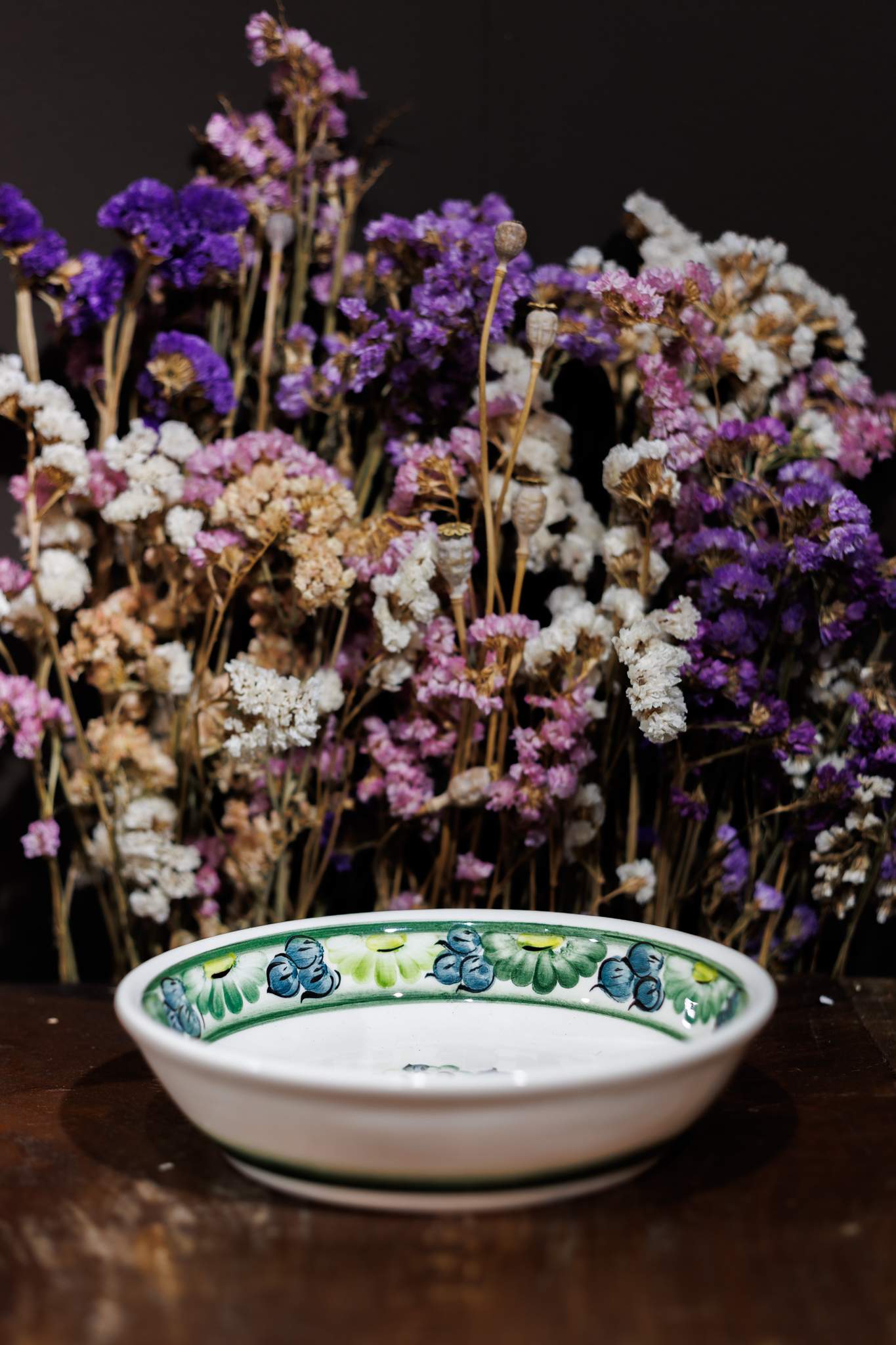 Płaska miska z Fajansu Włocławek o średnicy 19 cm charakteryzuje się tradycyjnym wyglądem. Jej ręcznie malowany, zielony wzór kwiatowy nadaje jej wyjątkowy urok. Dzięki szkliwieniu miska jest wytrzymała, błyszcząca i dobrze chroni zdobienia. Doskonale sprawdza się zarówno jako elegancka dekoracja stołu, jak i funkcjonalne naczynie do codziennego użytku.