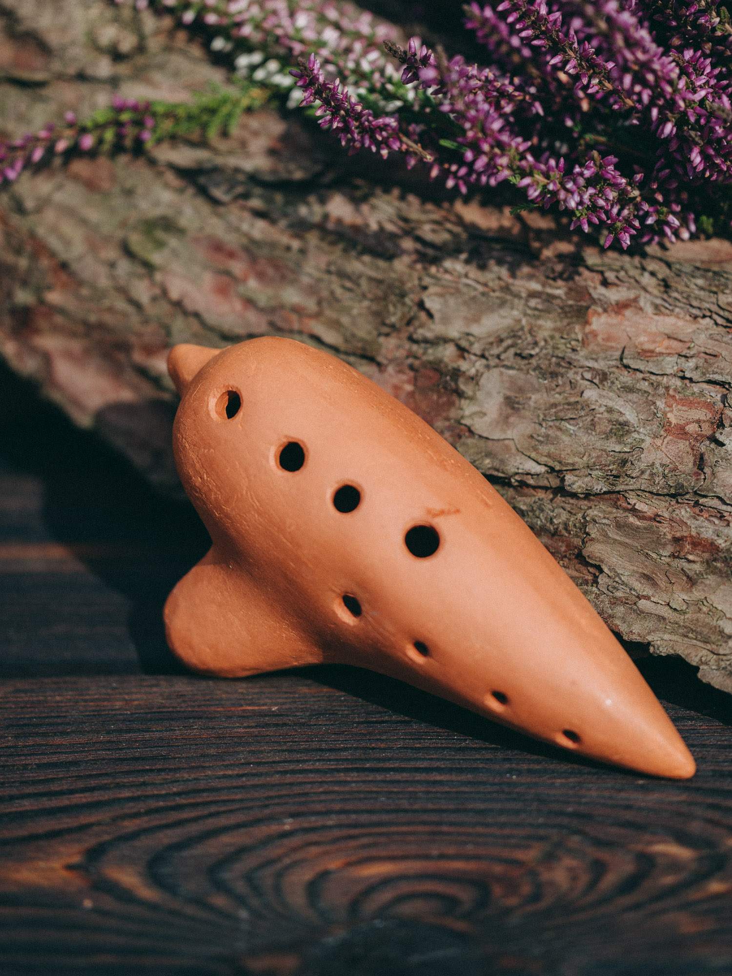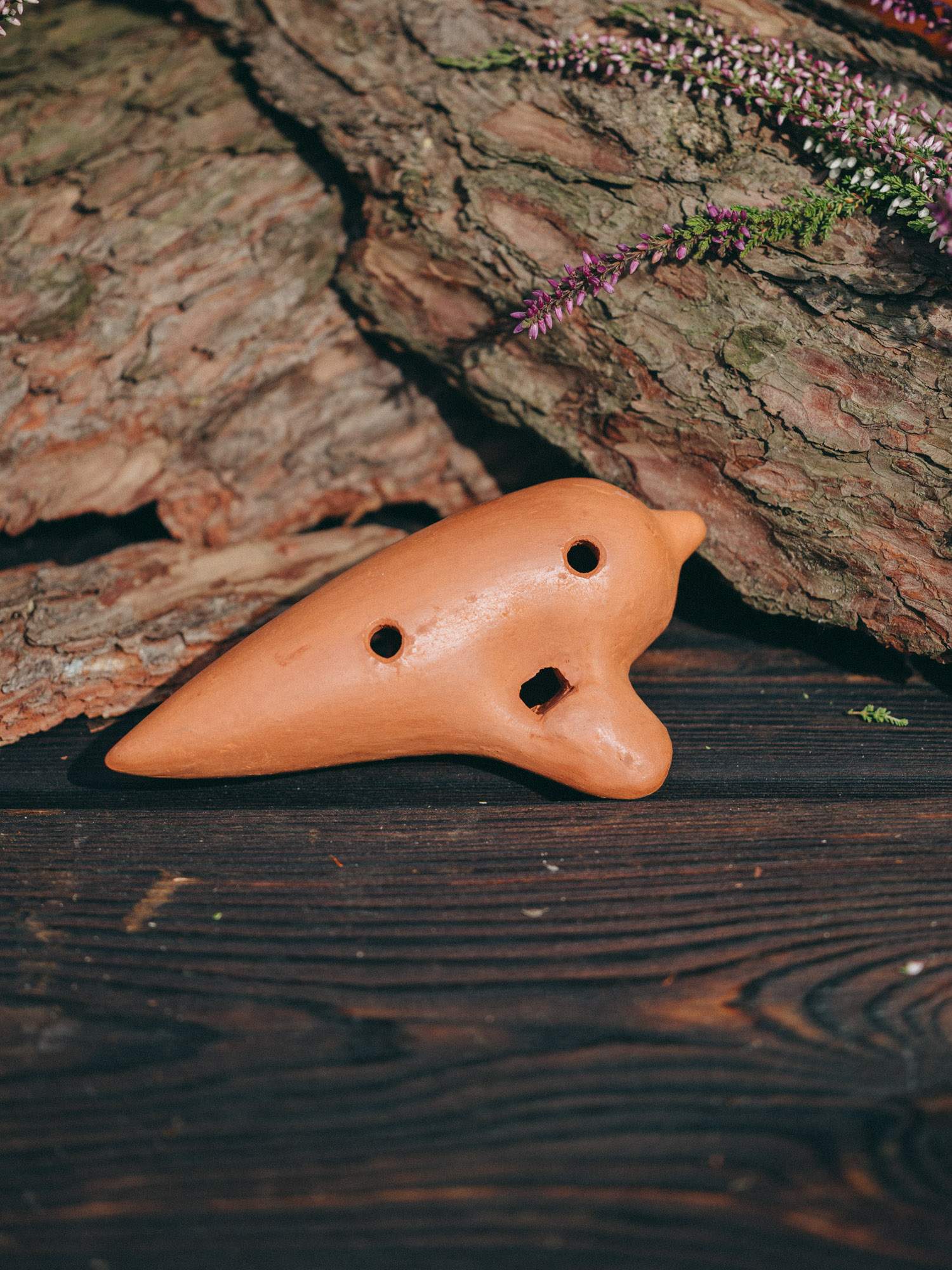 Tradycyjny instrument ludowy okaryna, wykonany ręcznie z naturalnej gliny.