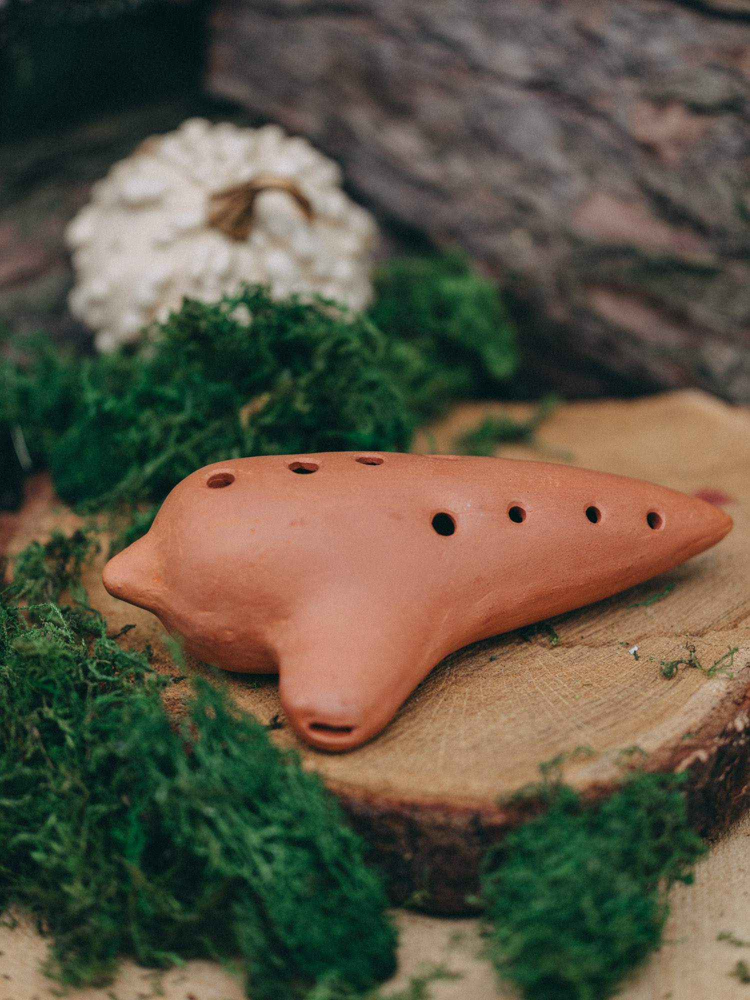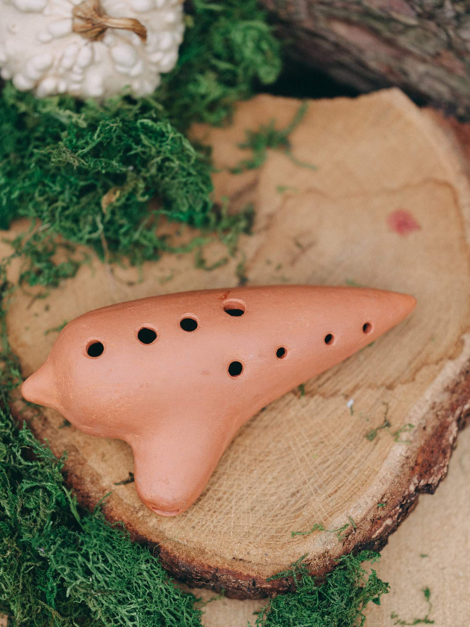 Tradycyjna okaryna wykonana z gliny. Ma opływowy, jajowaty kształt z wystającym ustnikiem, do którego się dmucha. Na okarynie znajduje się kilka otworów palcowych - ich liczba i rozmieszczenie pozwalają zmieniać wysokość dźwięku. Idealny pomysł na prezent dla miłośników muzyki, folkloru i rękodzieła.