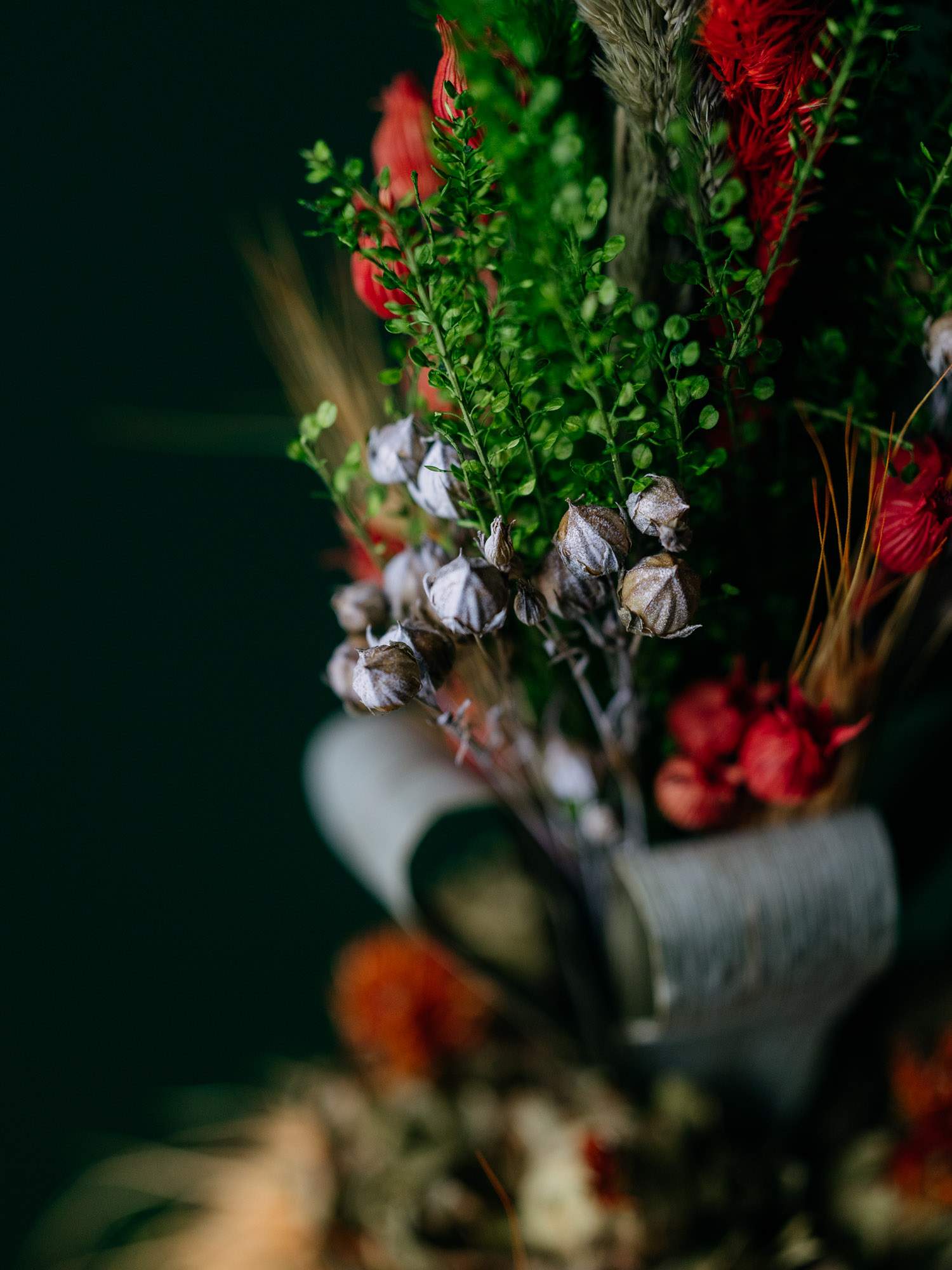 - Materiał: suszone trawy, trzciny i zboża z polskich pól, dekoracje z łuby drzewnej, bibuła