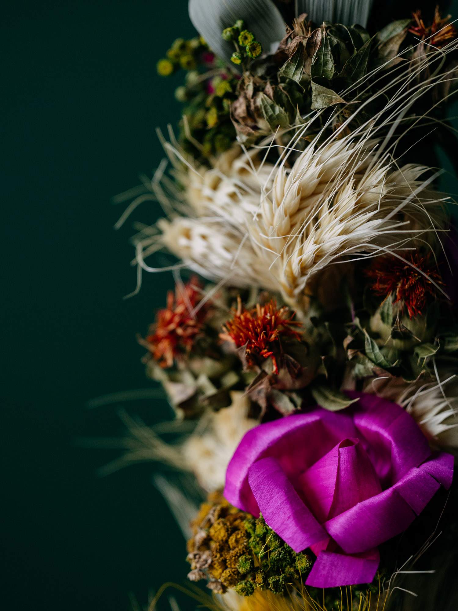 - Materiał: suszone trawy, trzciny i zboża z polskich pól, dekoracje z łuby drzewnej, bibuła