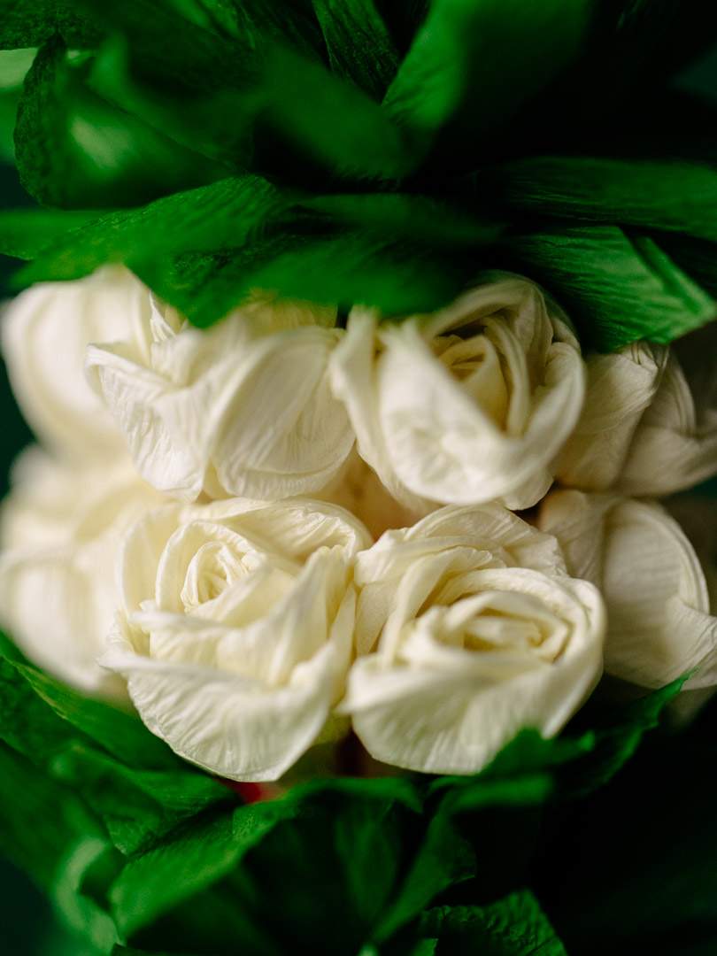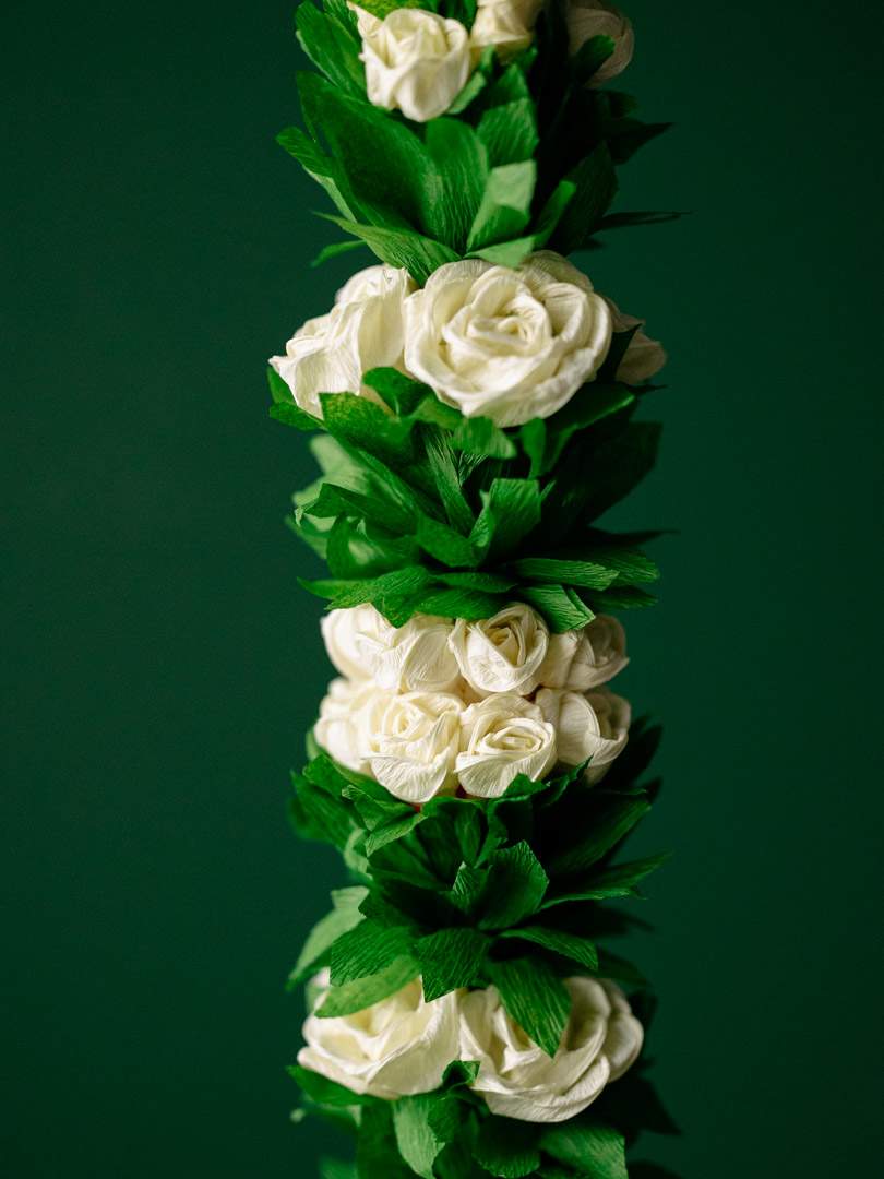 Ręcznie wykonana palma wielkanocna z bibuły w kolorze kremowym.