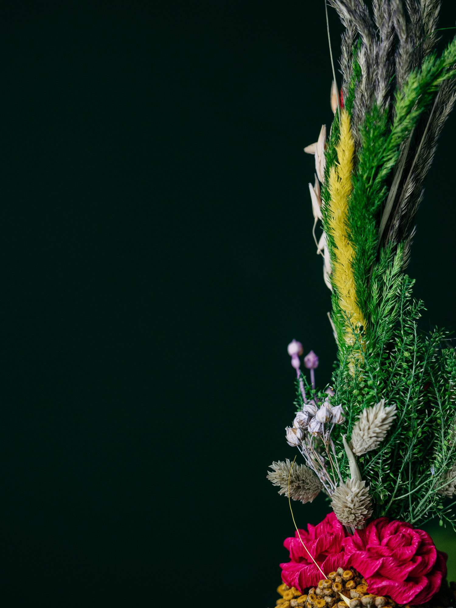 - Materiał: suszone trawy, trzciny i zboża z polskich pól, dekoracje z łuby drzewnej, bibuła
