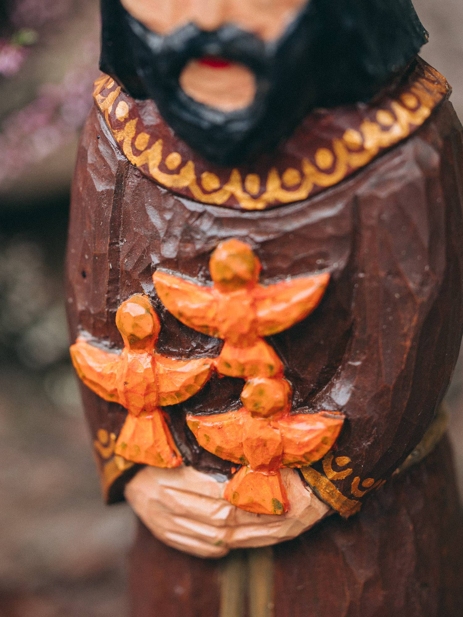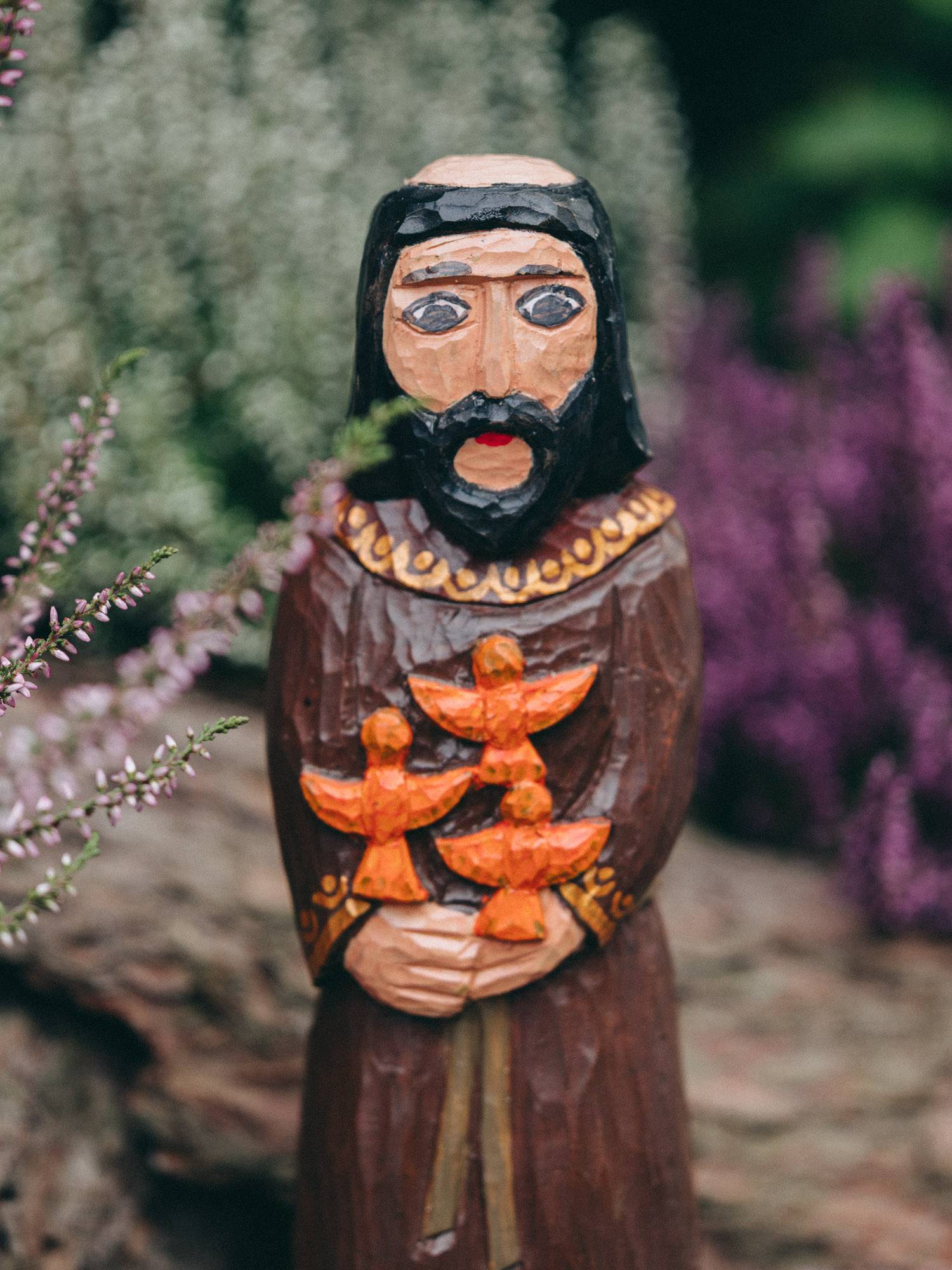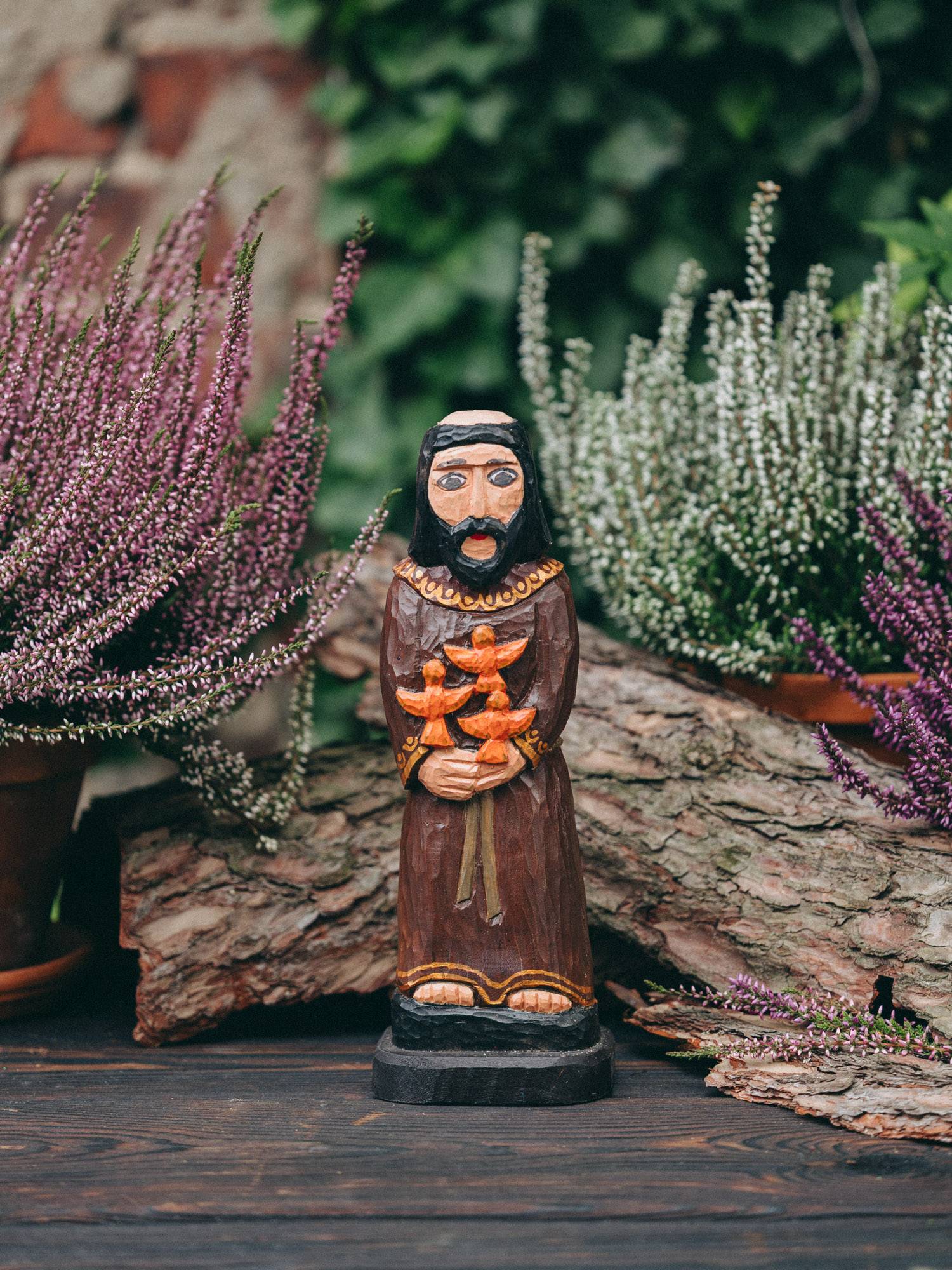 Ręcznie wykonana rzeźba sakralna przedstawiająca postać Świętego Franciszka z Asyżu.