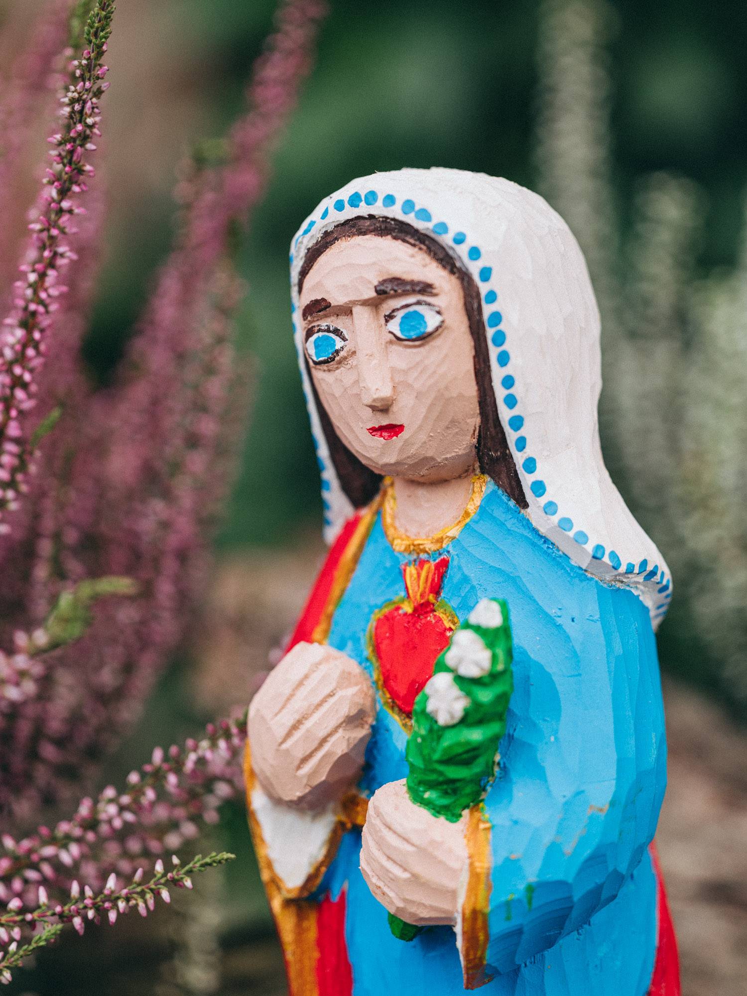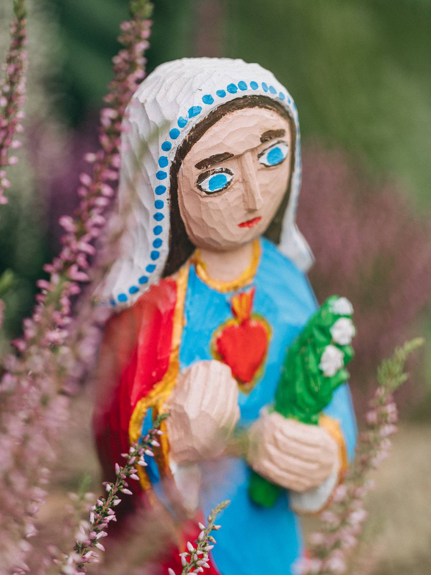 Rzeźbiona Matka Boska z gorejącym sercem