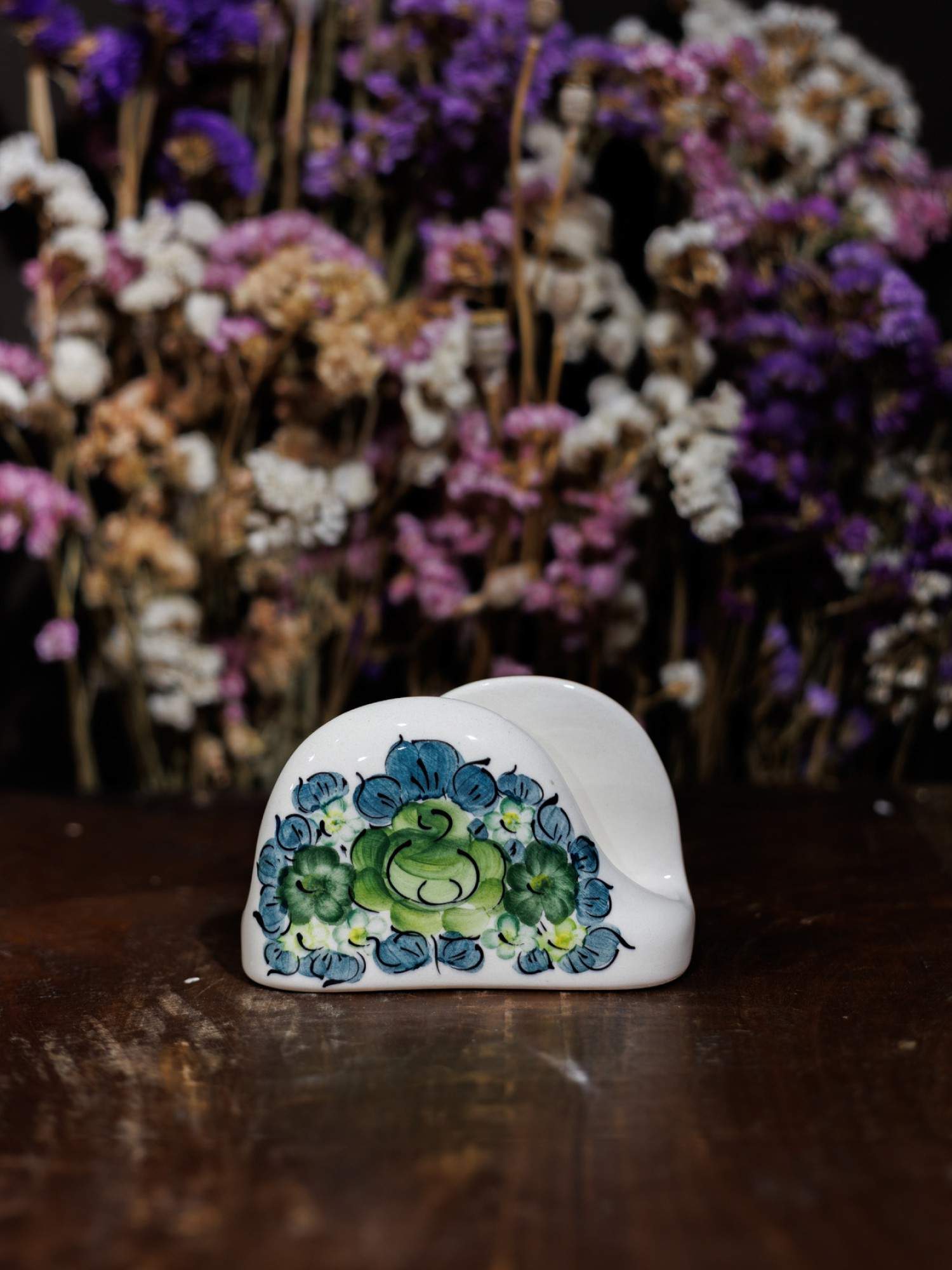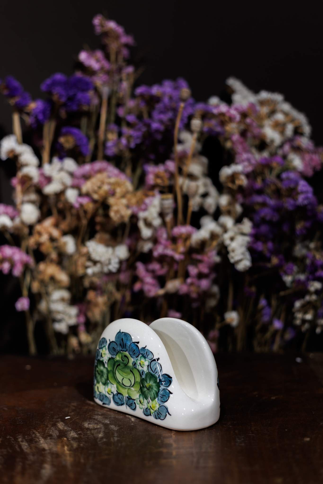Serwetnik z fajansu Włocławek, zdobiony kolorowym wzorem kwiatowym. Ożywi Twój stół, ale również będzie praktycznym dodatkiem. Jego solidne wykonanie sprawia, że serwetki pozostają na swoim miejscu, a jednocześnie dodaje wnętrzu odrobinę polskiego uroku i wyjątkowego charakteru.