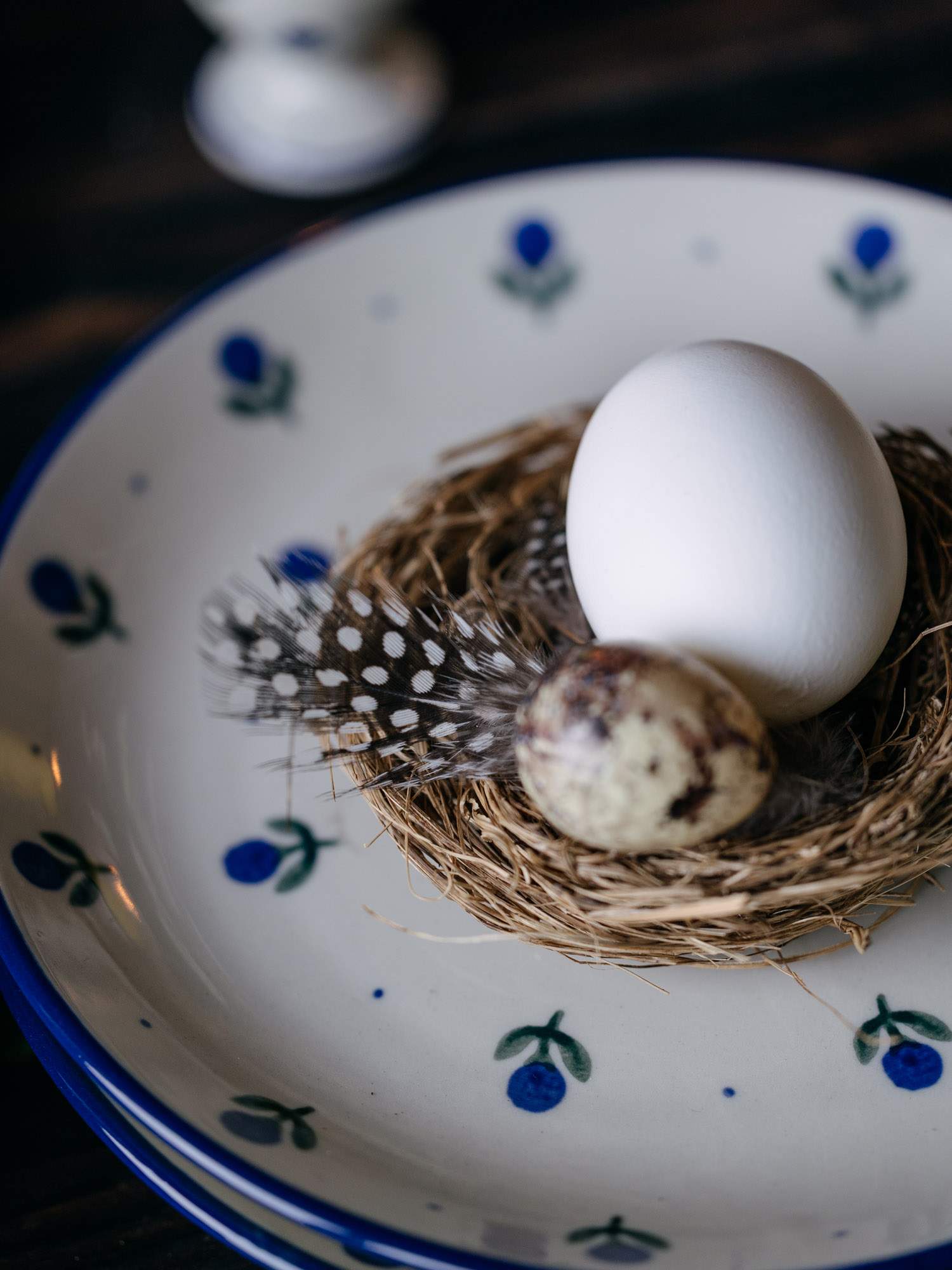 Rozszerzeniem tego wzoru są tak zwane pawie oczka. Stempelek w formie kobaltowego kółka uzupełniony jest mniejszym, zielonym okręgiem i brązowym punktem wewnątrz. Pawie oczka, na kremowym tle naczynia, często uzupełniane są jeszcze liniami w kolorze niebieskim. Ręcznie malowane wzory powodują, że każde naczynie jest unikalne i mogą między nimi występować minimalne różnice w zdobnictwie. Jednak bez precyzyjnych rąk i umiejętnych ruchów Twórcy Ludowego żadne naczynie samo nie powstanie.