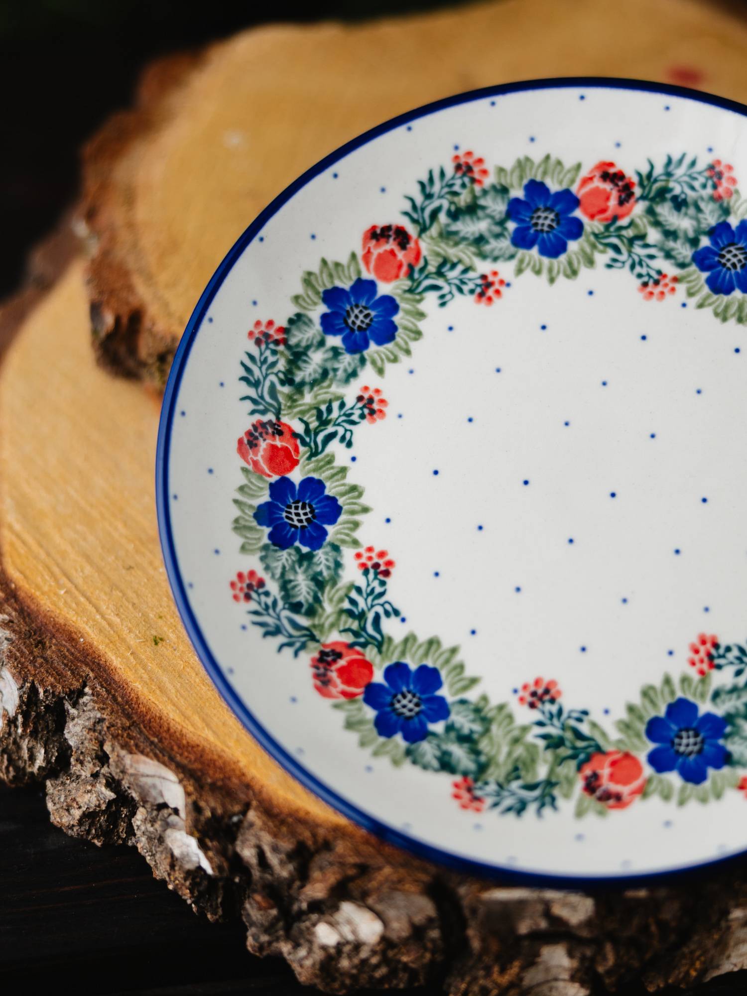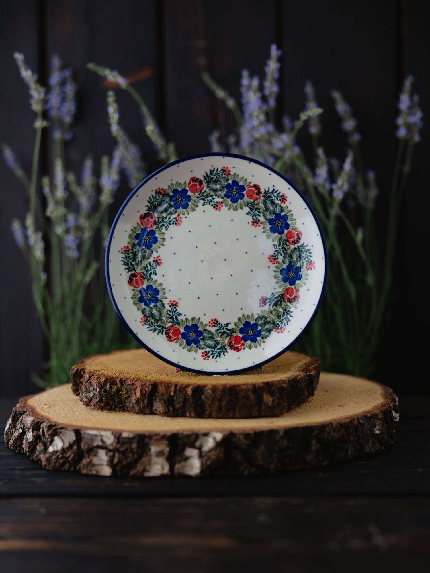 Talerz płaski deserowy Wianek z Makami - ceramika Bolesławiec
