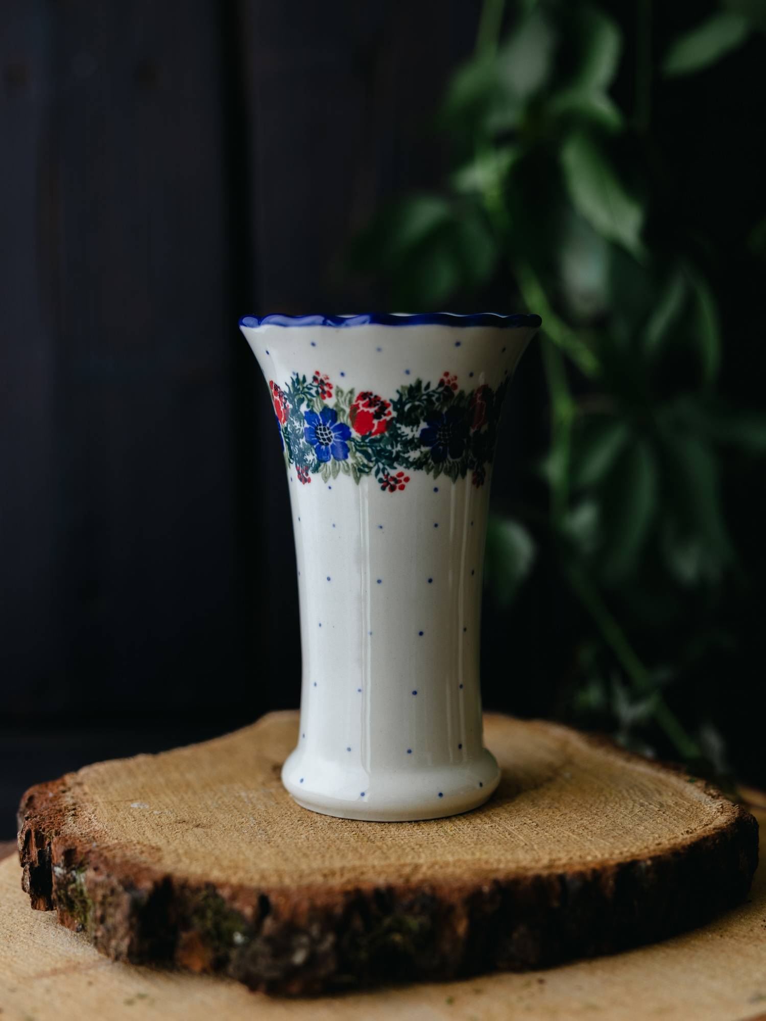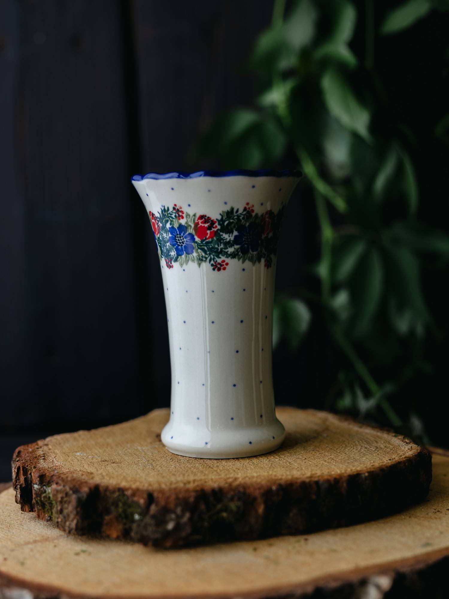 Wazon wąski Wianek z Makami - ceramika Bolesławiec