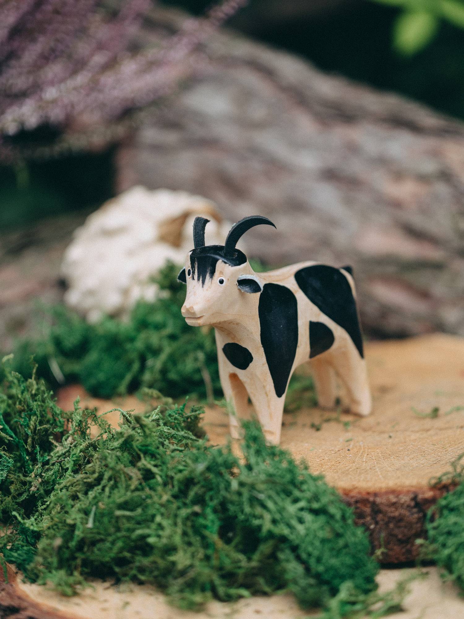 Zabawka rzeźbiona - koza łaciata