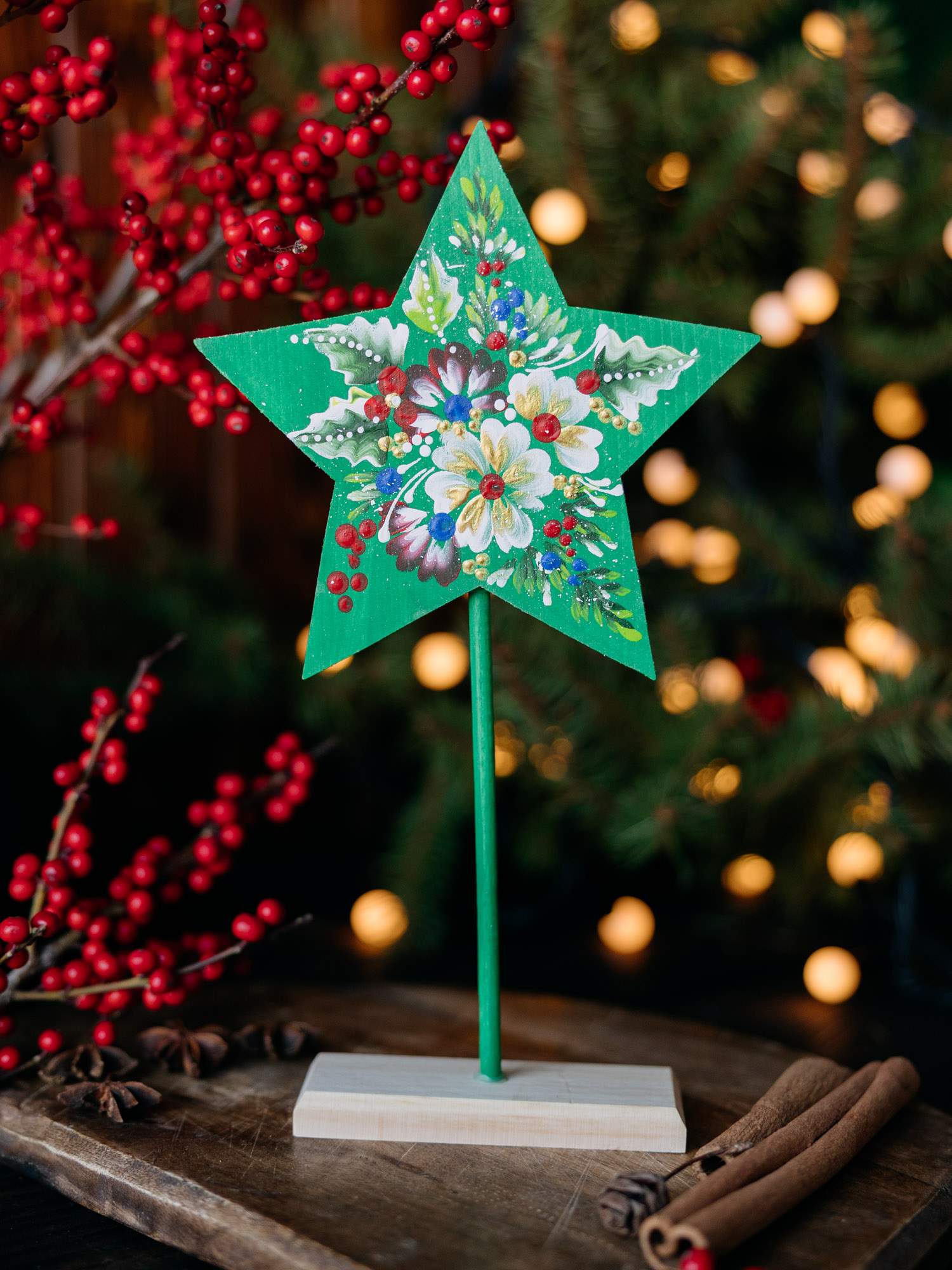 Zestaw świąteczny z domkiem i dużą gwiazdką - zielony w kwiaty
